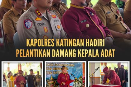 Katingan – Kapolres Katingan AKBP Dodik Hartono, S.H., S.I.K., M.H. menghadiri kegiatan pelantikan Damang Kepala Adat Kecamatan Tasik Payawan dan Kecamatan Mendawai yang digelar di halaman Kantor Bupa...