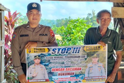 Tribratanews.kalteng.polri.go.id – Polda Kalteng – Polres Katingan – Personel Bhabinkamtibmas Polsek Sanaman Mantikei Briptu Sending melaksanakan sosialisasi tentang larangan terhadap pelaku Ilegal Mi...