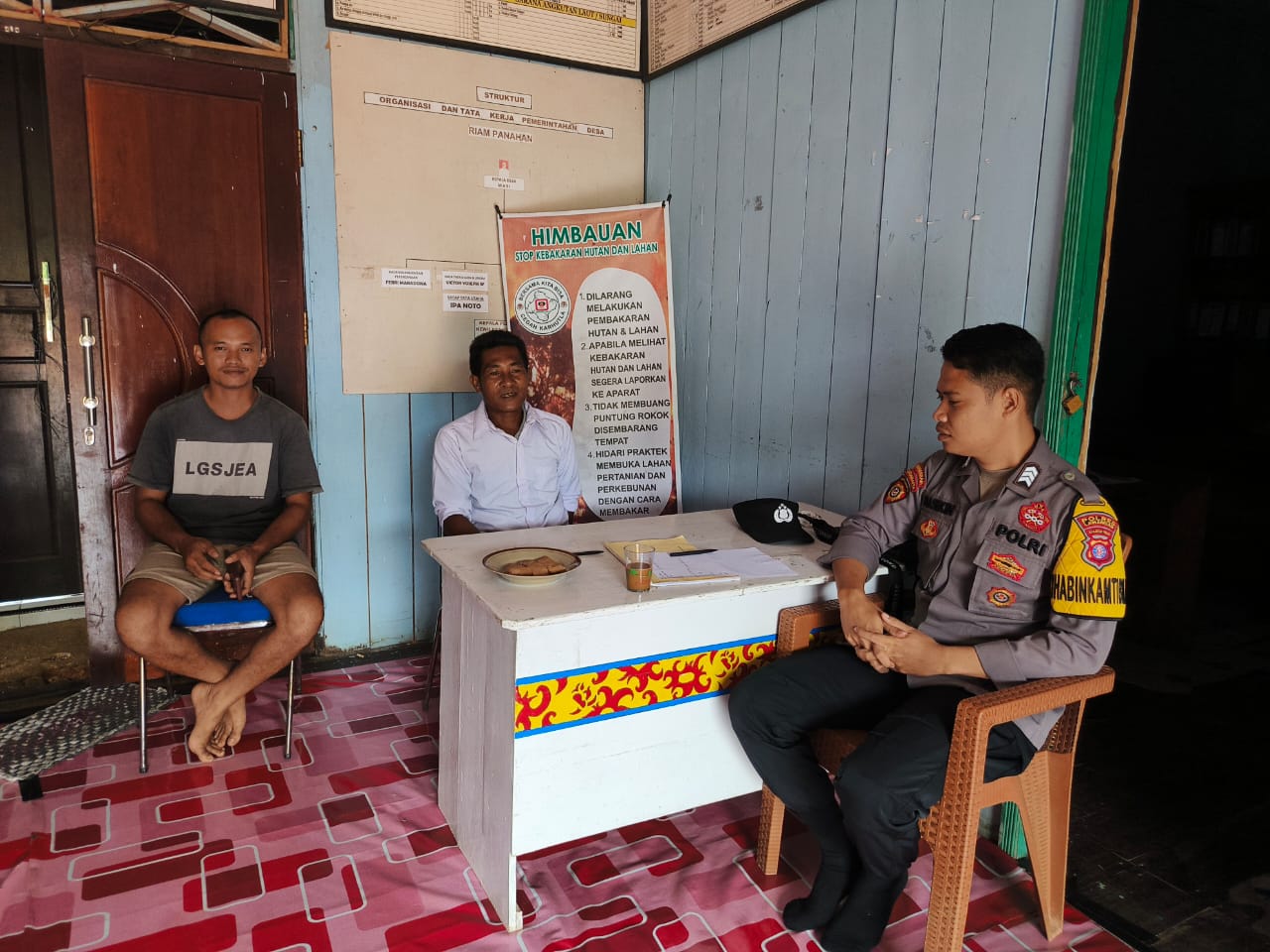 Polres Lamandau – Dalam upaya menciptakan situasi kamtibmas yang aman dan kondusif sekaligus mencegah potensi kebakaran hutan dan lahan (karhutla), Bhabinkamtibmas Brigadir Nasikin, S.H. Polsek Delang, melaksanakan kegiatan sambang dan sosialisasi emdes Desa Riam panahan, Kec. Delang, Kab. Lamandau, Prov. Kalteng, Rabu (20/8/25) Pagi.