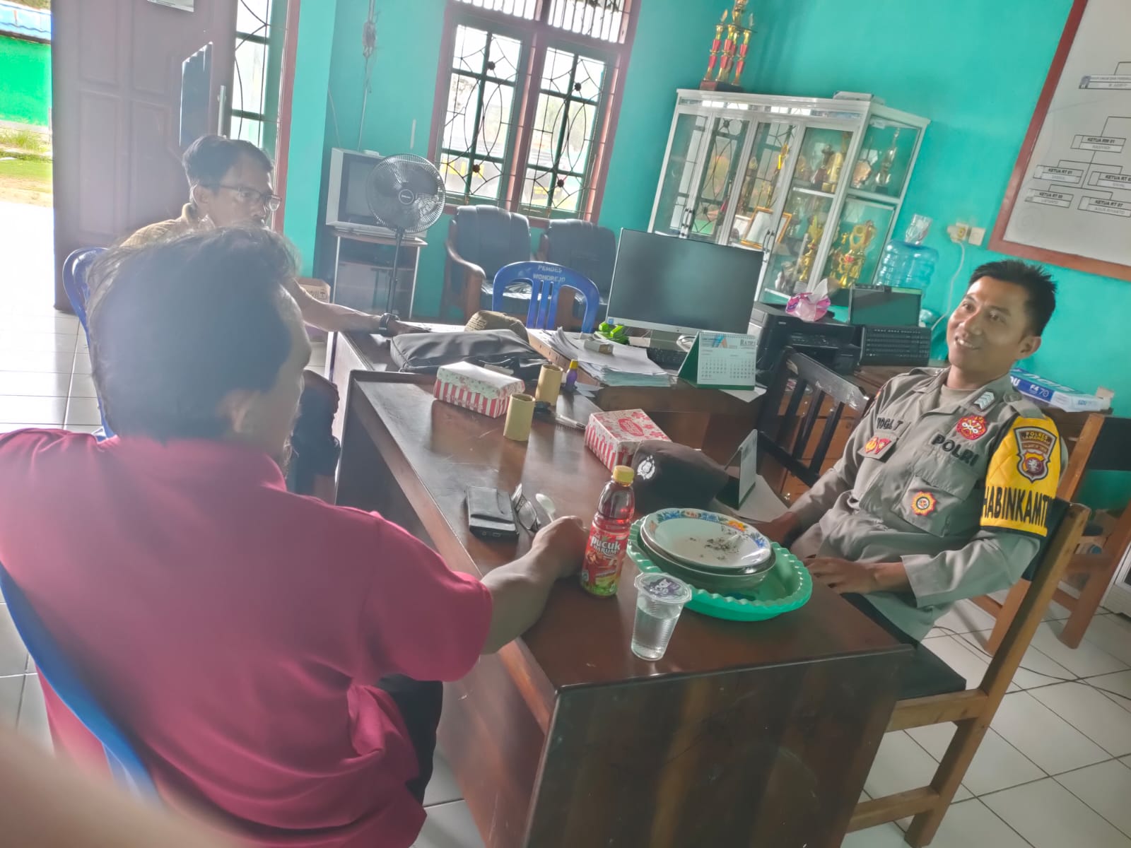 Kegiatan sambang dan silaturahmi ke Kantor Pemerintah Desa Wonorejou Kec. Sematu Jaya Kab. Lamandau, Prop. Kalteng, seperti yang dilakukan oleh Bhabinkamtibmas Bripka Yoga yang pada saat ini melaksanakan sambang dan silaturahmi Koordinasi tentang kamtibmas di desa.