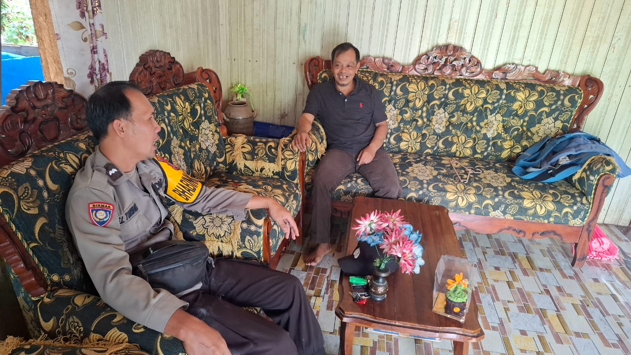 Barito Utara – Personel Bhabinkamtibmas Polsek Lampeong, Aipda Tobing, melaksanakan kegiatan sambang ke rumah Kepala Desa Lampeong I pada Senin (16/9/2025).