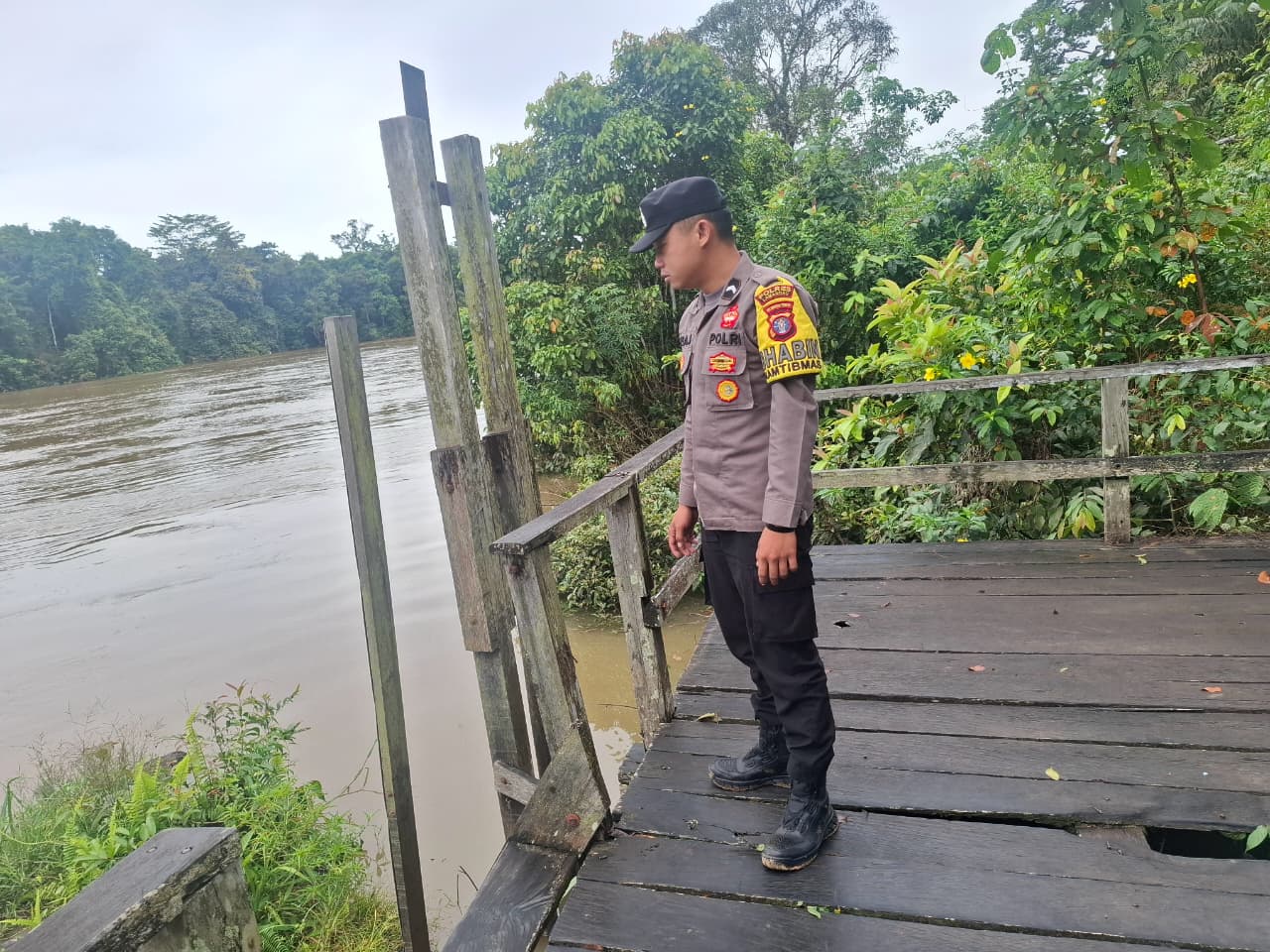 Polres Lamandau – Personel Polsek Lamandau Melaksanakan Patroli dan Pantau Cek debit air Sungai Lamandau Antisipasi terjadinya Bencana banjir di Wilayah Kabupaten Lamandau Khususnya Kecamatan Lamandau yang bertempat di Dermaga Tapin Bini, kecamatan Lamandau, Kabupaten Lamandau, Provinsi Kalteng, Kamis (18/9/25) Pagi.