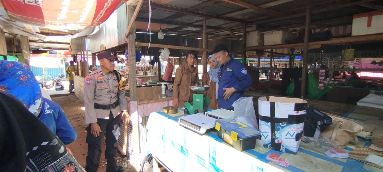 Nanga Bulik – Bhabinkamtibmas Polsek Bulik bersama Dinas Perdagangan DKUKMPP Kabupaten Lamandau melaksanakan kegiatan pengawasan dan pelayanan metrologi legal terhadap UTTP (alat ukur, takar, timbang dan perlengkapannya) serta barang dalam keadaan terbungkus (BDKT). Kegiatan ini menyasar pelaku usaha, pemilik, dan pengguna UTTP di kawasan Pasar Lama Sayur dan Ikan sepanjang Jalan Cempaka, RT 05, Kelurahan Nanga Bulik, Kecamatan Bulik, Kabupaten Lamandau, Rabu (24/9/25) Pagi.