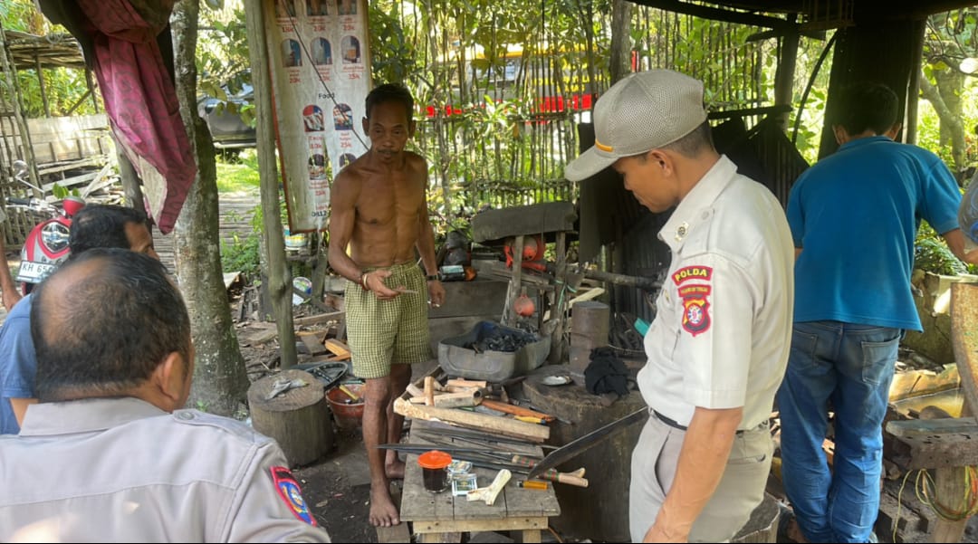 Pada kesempatan tersebut, AKP Mulyono menyambangi pengrajin senjata tajam dan warung kopi dengan menyampaikan pesan-pesan Kamtibmas.