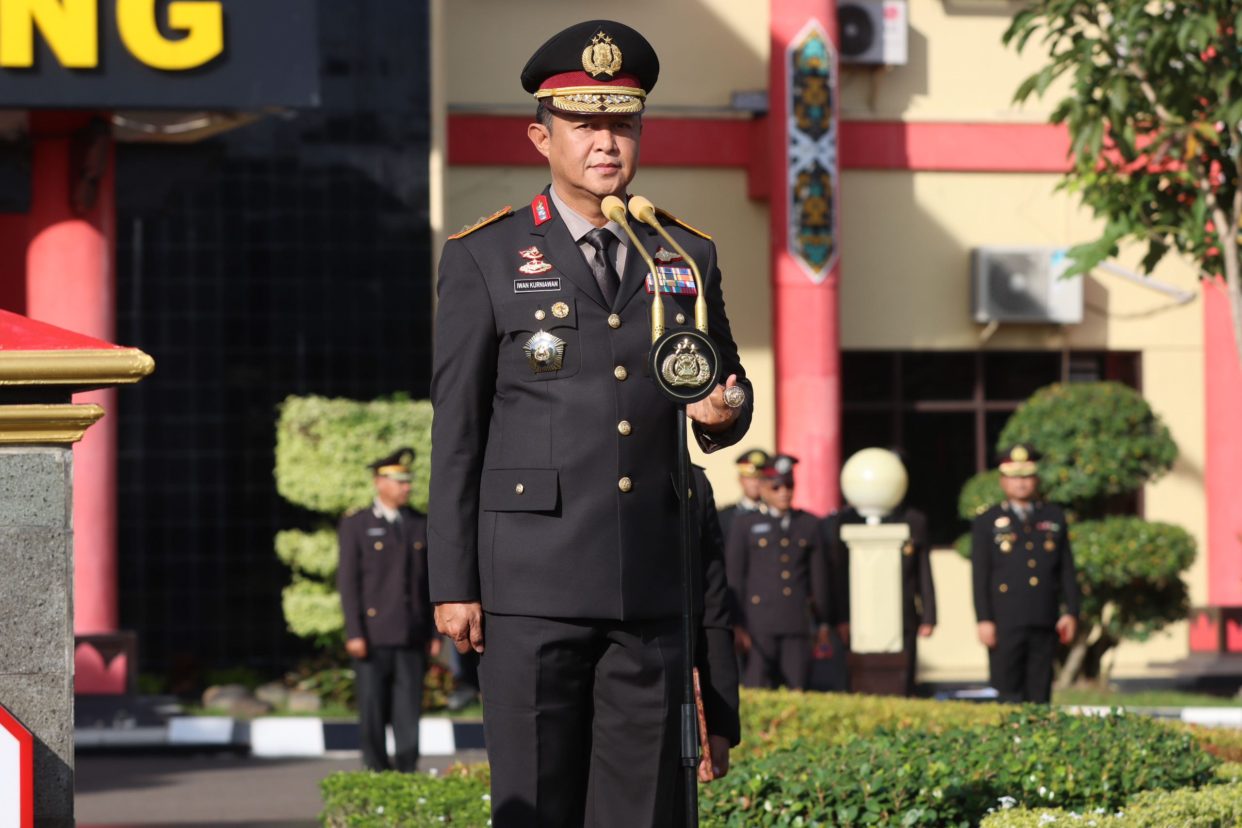 Bertindak sebagai Inspektur upacara (Irup) Kapolda Kalteng Irjen Pol Iwan Kurniawan, S.IK., M.Si. dan diikuti Wakapolda Brigjen Pol Dr. Rakhmad Setyadi, pejabat utama dan personel Polri maupun ASN Polda Kalteng.