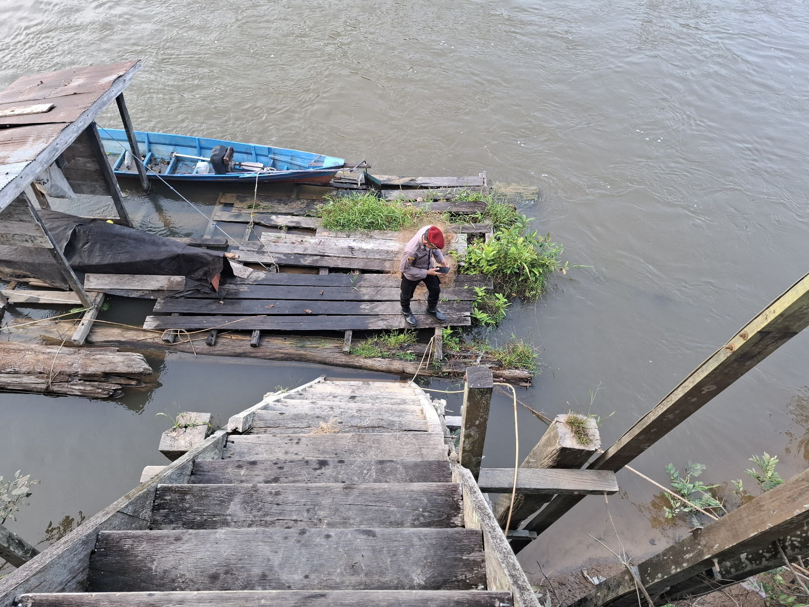 Polres Lamandau – Personel Polsek Lamandau Melaksanakan Patroli dan Pantau Cek debit air Sungai Lamandau Antisipasi terjadinya Bencana banjir di Wilayah Kabupaten Lamandau Khususnya Kecamatan Lamandau yang bertempat di Dermaga Tapin Bini, kecamatan Lamandau, Kabupaten Lamandau, Provinsi Kalteng, Rabu (1/10/25) Pagi.
