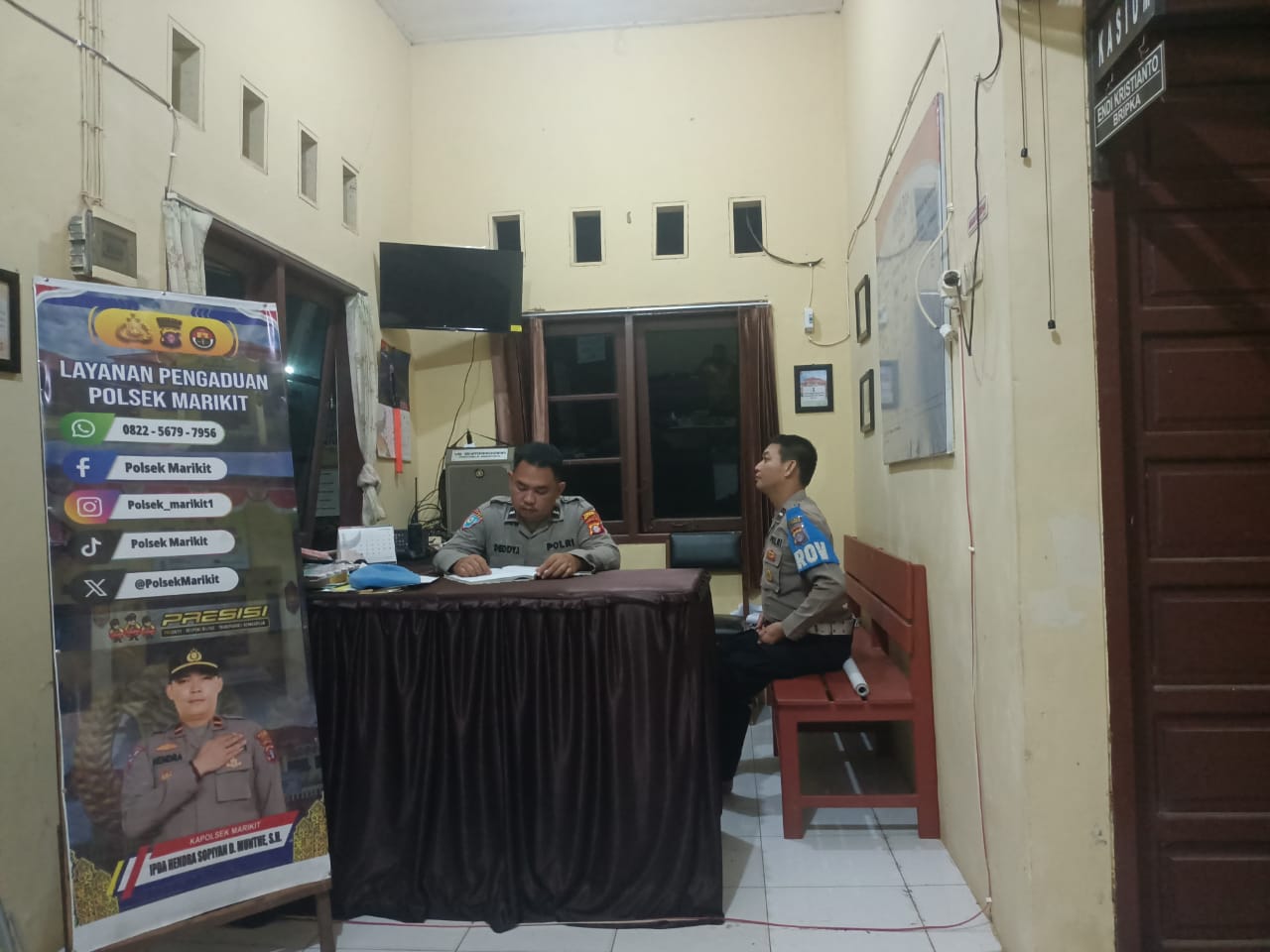 “Personel Polsek Marikit melaksanakan penjagaan di ruang pelayanan Mako Polsek hal tersebut bertujuan untuk menjaga serta melindungi Mako dan personel Polsek juga tetap melaksanakan patroli untuk mengantisipasi Gangguan Kamtibmas diwilayah hukum Polsek Marikit”. Jelasnya.
