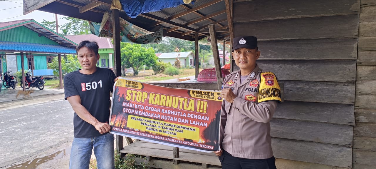 Polres Katingan – Salah satu cara Polsek Tws. Garing dan Pulau Malan, Polres Katingan, Polda Kalimantan Tengah dalam menangani Dampak KARHUTLA, Bhabinkamtias polsek Tws. Garing dan Pulau Malan melaksanakan Sosialisasi STOP!!! KEJAHATAN TERHADAP LINGKUNGAN “DILARANG MEMBAKAR HUTAN DAN LAHAN DI WILKUM POLSEK TWS GARING DAN P. MALAN kepada masyarakat Desa Tura Kec. Pulau Malan, Kab. Katingan kegiatan, Minggu (05/10/2025) pagi.