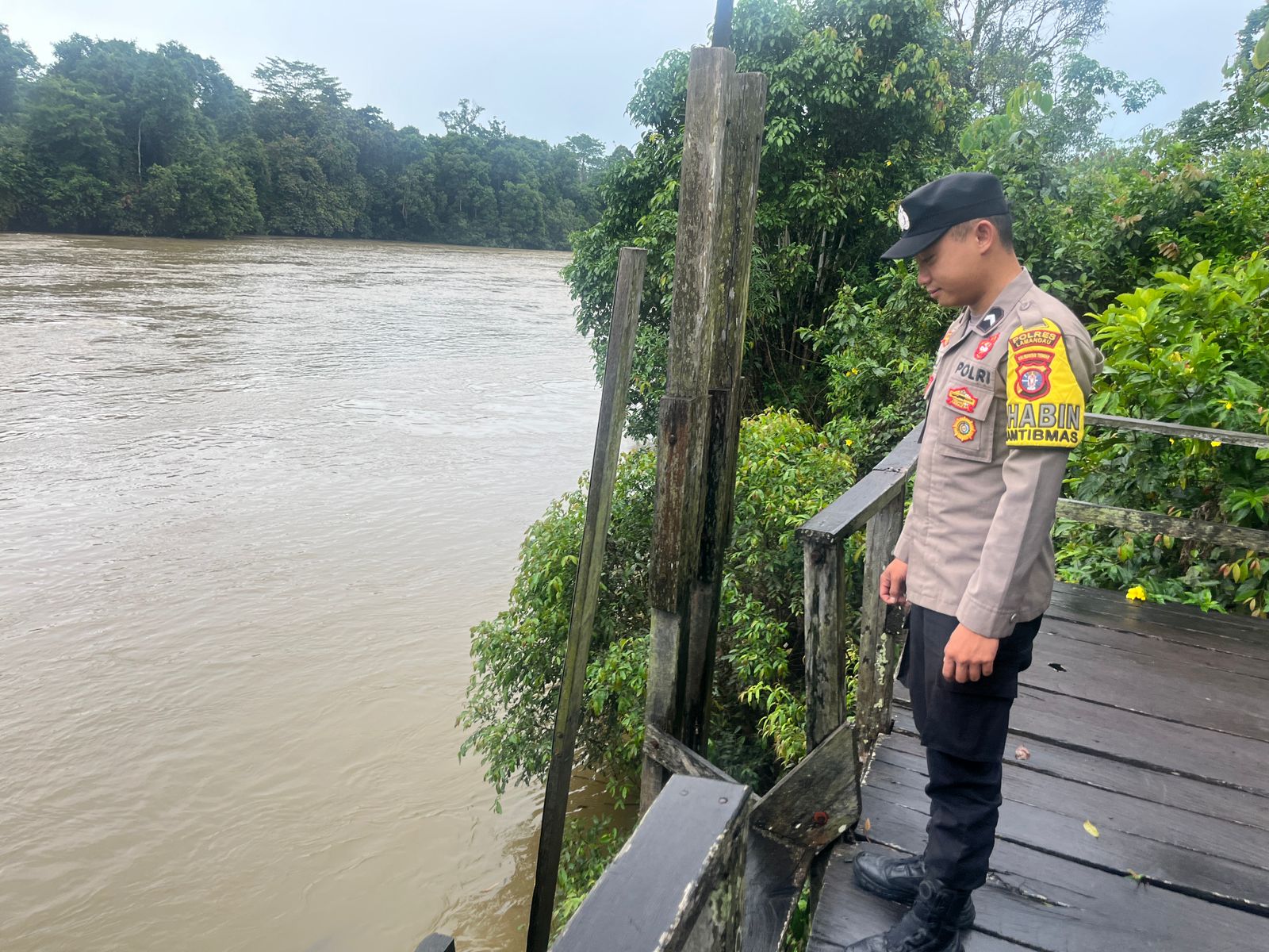 Polres Lamandau – Personel Polsek Lamandau Melaksanakan Patroli dan Pantau Cek debit air Sungai Lamandau Antisipasi terjadinya Bencana banjir di Wilayah Kabupaten Lamandau Khususnya Kecamatan Lamandau yang bertempat di Dermaga Tapin Bini, kecamatan Lamandau, Kabupaten Lamandau, Provinsi Kalteng, Senin (6/10/25) Pagi.