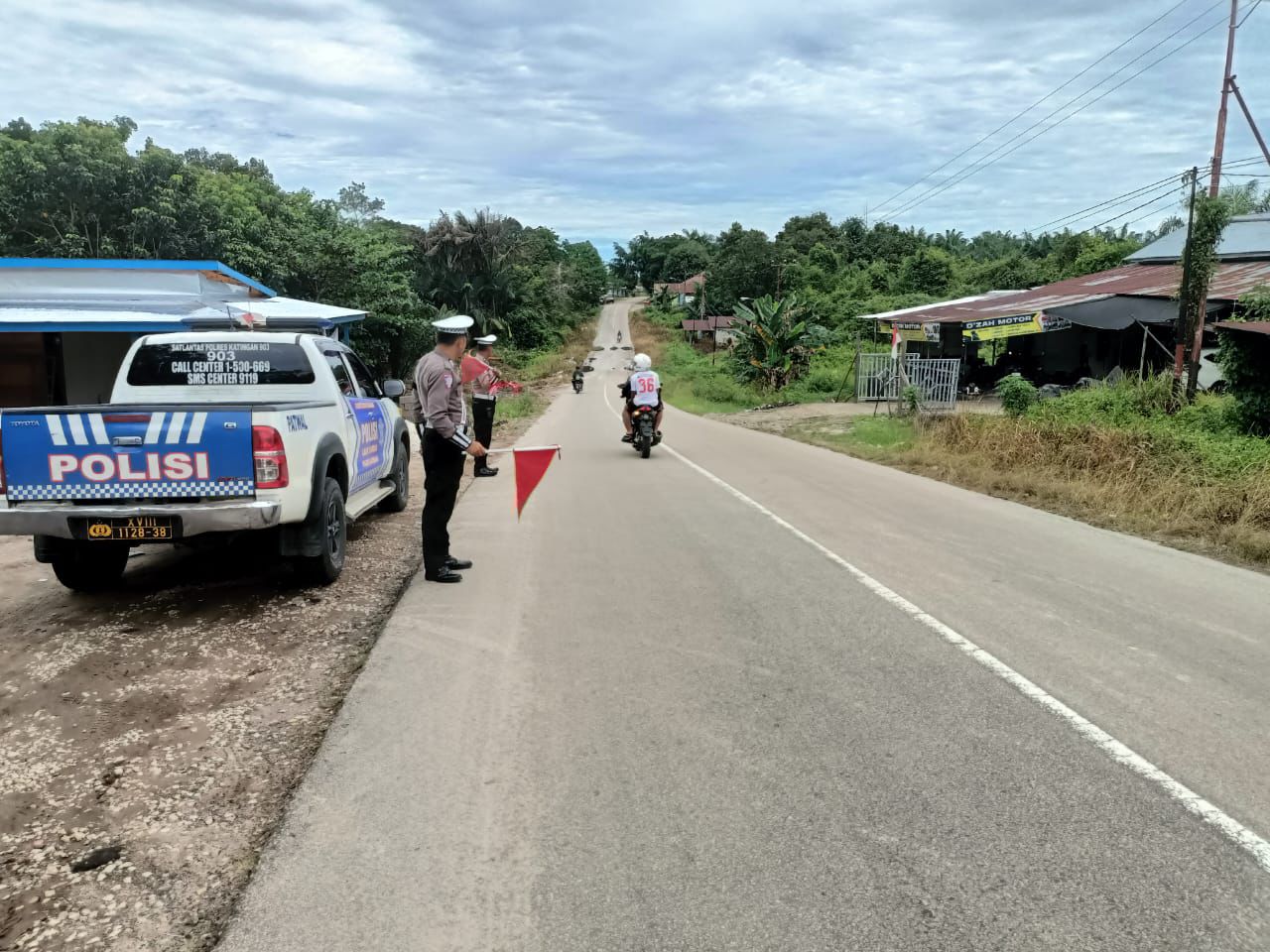 Nampak dalam kegiatan tersebut Personil Piket Satlantas Polres Katingan memberikan intruksi kepada pengguna jalan saat melewati jalan tersebut agar berhati hati dan memelankan laju kendaraannya dikarenakan daerah tersebut terdapat pemukiman warga dan tikungan tajam setelahnya.