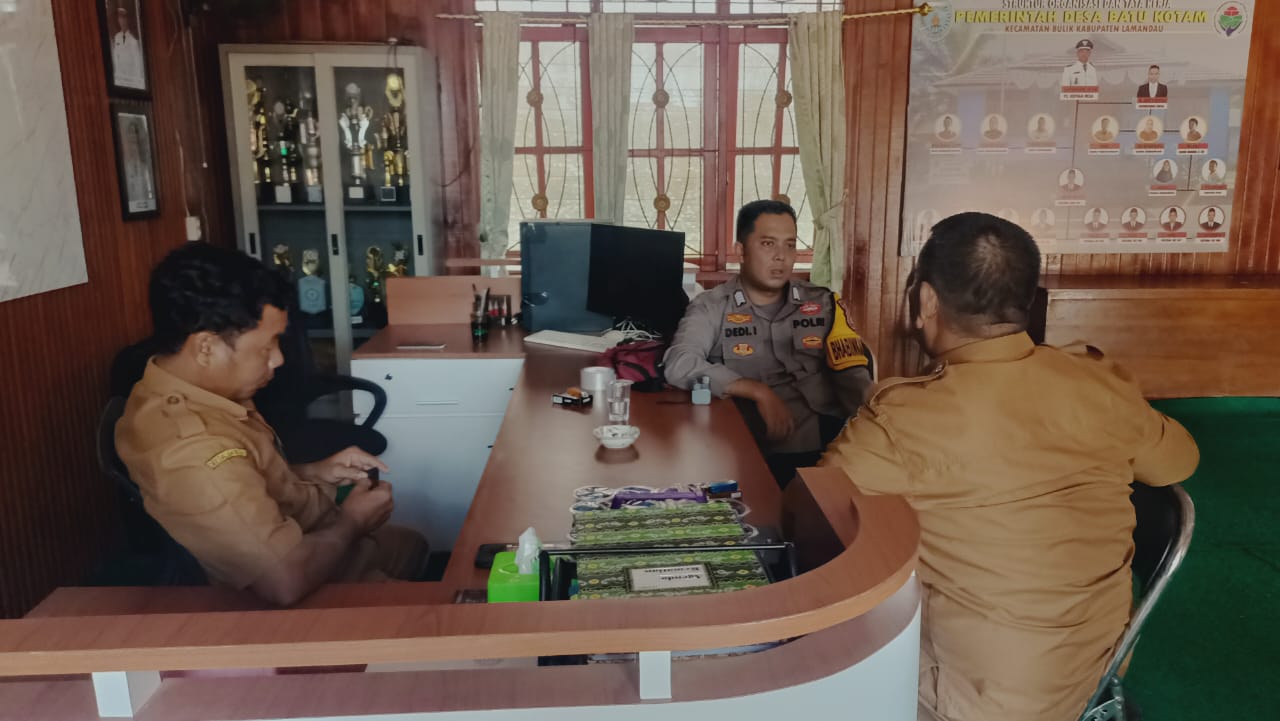 Kegiatan sambang dan silaturahmi ke Kantor Desa Batu Kotam Kec. Bulik Kab. Lamandau, Prop. Kalteng, seperti yang dilakukan oleh Bhabinkamtibmas Brigpol langgeng yang pada saat ini melaksanakan sambang dan silaturahmi Koordinasi tentang kamtibmas di desa.