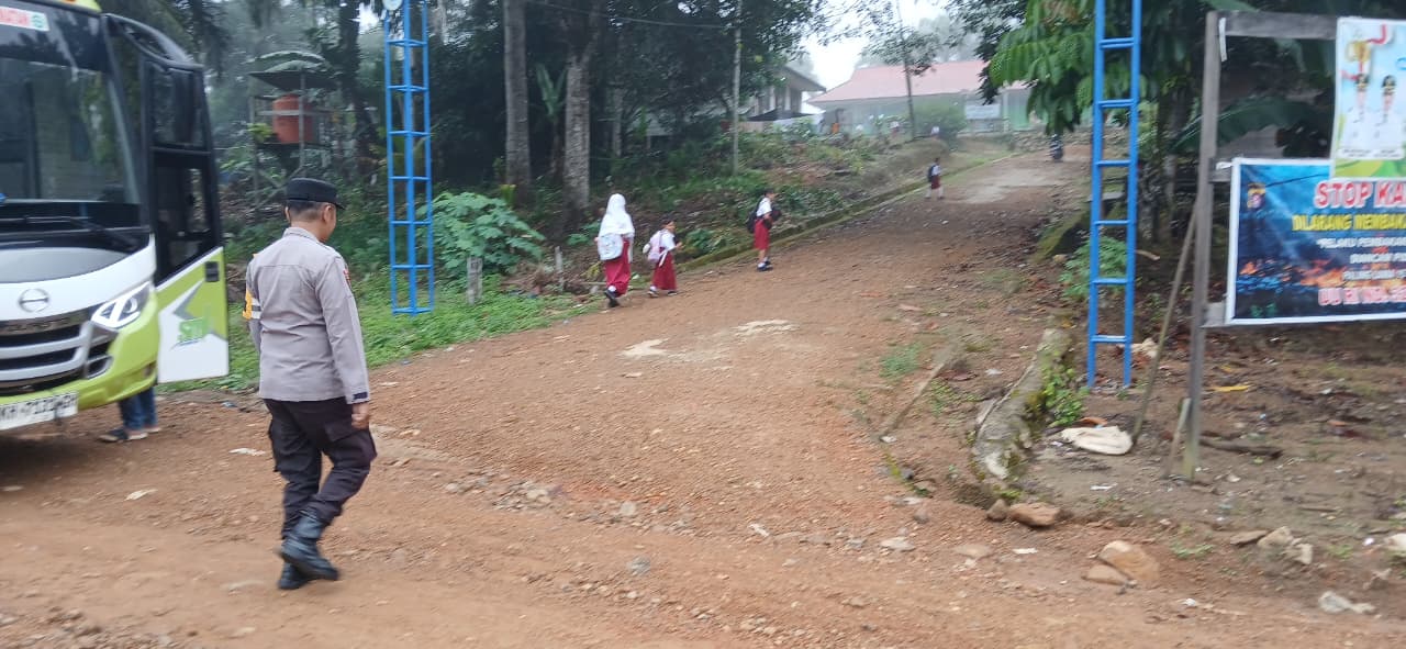 Seperti yang terlihat didepan Sekolah SDN 1 tapin bini kecamatan lamandau Brigpol Widyantoni Rajib beserta Bripda Etsa Anggota Jaga tampak tengah melaksanakan pengamanan /pengaturan Siswa Siswi SDN 1 tapin bini tersebut.