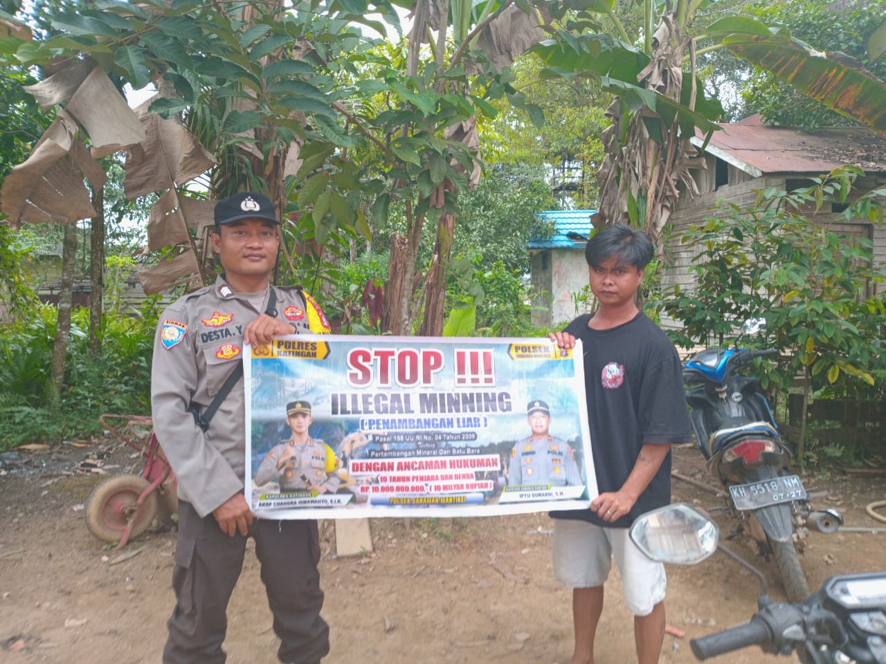 Tribratanews.kalteng.polri.go.id – Polda Kalteng – Polres Katingan – Personel Bhabinkamtibmas Polsek Sanaman Mantikei Brigpol Desta melaksanakan sosialisasi tentang larangan terhadap pelaku Illegal Mining kepada masyarakat di Desa kamanto Kamis(12/10/2025)