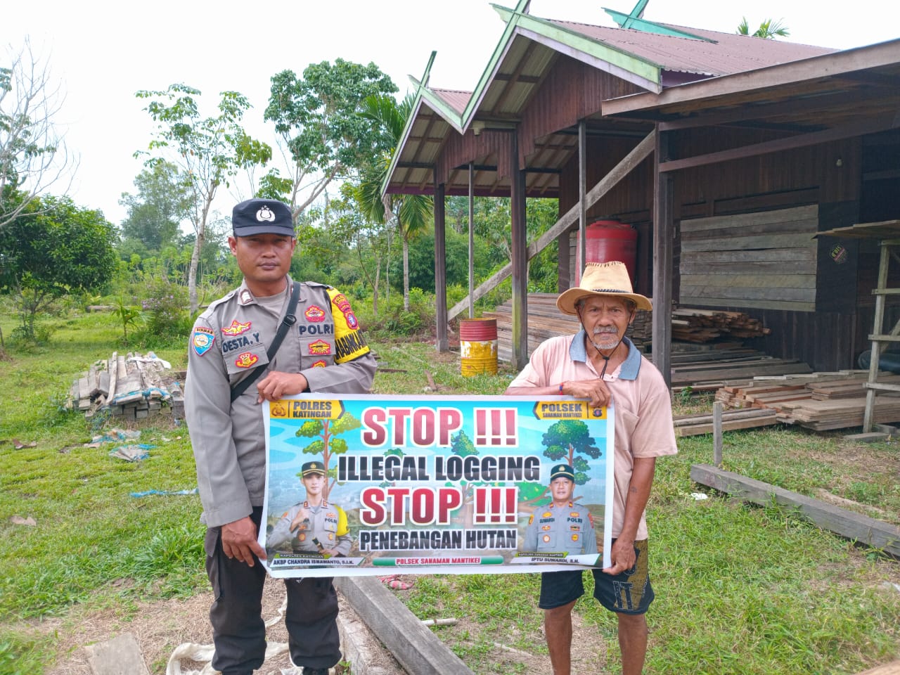 Kapolres Katingan AKBP CHANDRA ISMAWANTO , S.I.K.,melalui Kapolsek Sanaman Mantikei IPTU SUWARDI , S.H menjelaskan kegiatan Bhabinkamtibmas jajaran Polres Katingan dengan cara sosialisasi kepada masyarakat agar mengerti dan memahami tentang larangan dan sangsi bagi pelaku pekerja Ileggal Loging serta mengerti bahwa dampak dan akibat yang di timbulkan akibat Ileggal Loging tersebut.