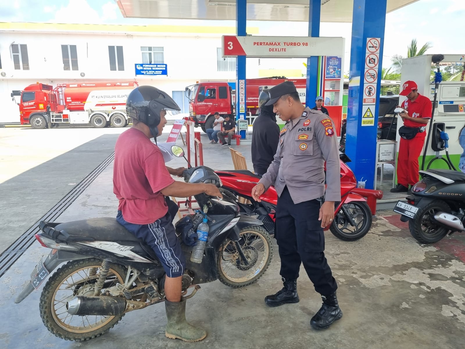 Tribratanews.kalteng.polri.go.id – Polres Barut – Menjaga Harkamtibmas Wilkum Polsek Teweh Tengah, Polsek Teweh Tengah jajaran Polres Barut (Barito Utara), Polda Kalteng melaksanakan Monitoring Harga BBM, ketersediaan BBM dan mencegah lonjakan antrian BBM di SPBU sekitar Kota Muara Teweh, Senin (13/10/2025) Siang mulai Pukul 11:20 WIB.