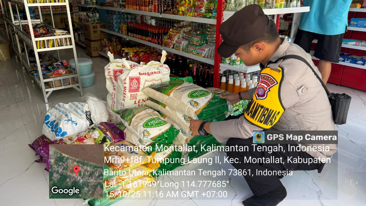 Tribratanews.kalteng.polri.go.id – Polres Barito Utara – Dalam rangka memastikan ketersediaan dan kestabilan harga bahan pokok (sembako), Polsek Montallat melaksanakan pengecekan langsung di sejumlah pasar dan toko sembako di wilayah hukum Polsek Montallat, Siang Rabu 15 Oktober 2025. Pukul 11.00 Wib.