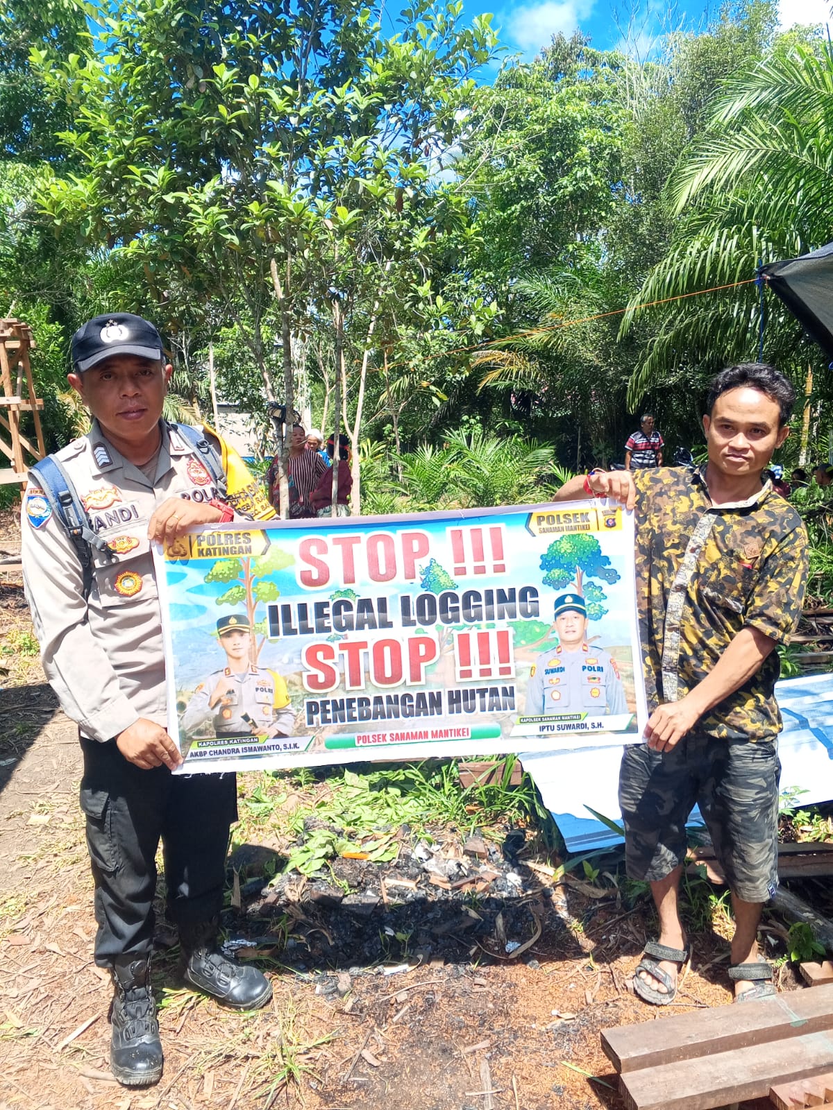 Kapolres Katingan AKBP CHANDRA ISMAWANTO , S.I.K.,melalui Kapolsek Sanaman Mantikei IPTU SUWARDI , S.H menjelaskan kegiatan Bhabinkamtibmas jajaran Polres Katingan dengan cara sosialisasi kepada masyarakat agar mengerti dan memahami tentang larangan dan sangsi bagi pelaku pekerja Ileggal Loging serta mengerti bahwa dampak dan akibat yang di timbulkan akibat Ileggal Loging tersebut.