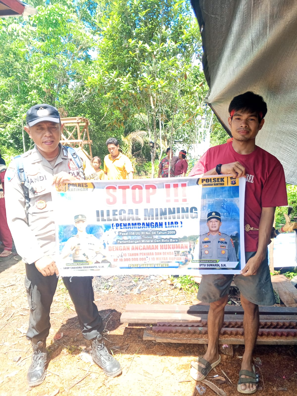 Kapolres Katingan AKBP CHANDRA ISMAWANTO, S.I.K., melalui Kapolsek Sanaman Mantikei Iptu SUWARDI, S.H., menjelaskan kegiatan Bhabinkamtibmas jajaran Polres Katingan dengan cara sosialisasi kepada masyarakat agar mengerti dan memahami tentang larangan Ilegal Mining serta mengerti bahwa dampak dan akibat yang di timbulkan akibat Ilegal mining tersebut.