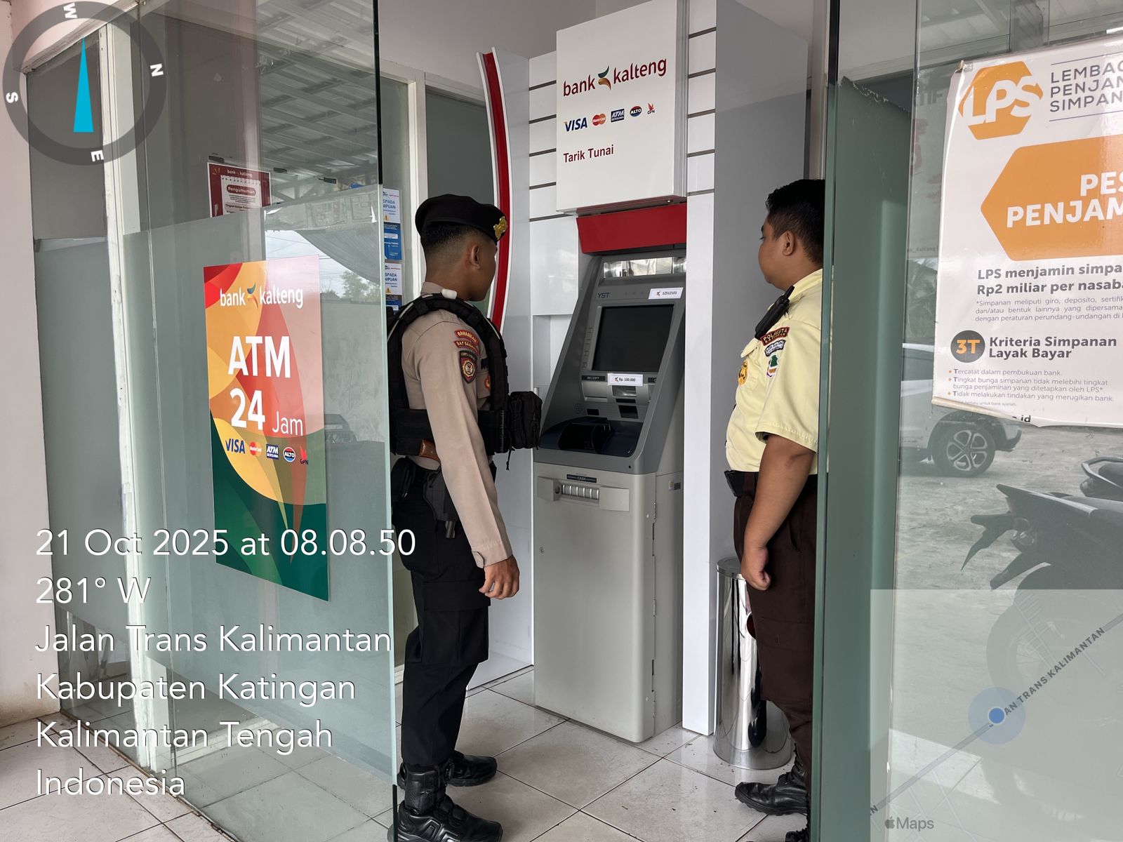 Personel Sat Samapta Polres Katingan melaksanakan PAM Obvit di Bank Yang Ada Di Wilayah Kab. Katingan. Selasa (21/10/25) Siang.
