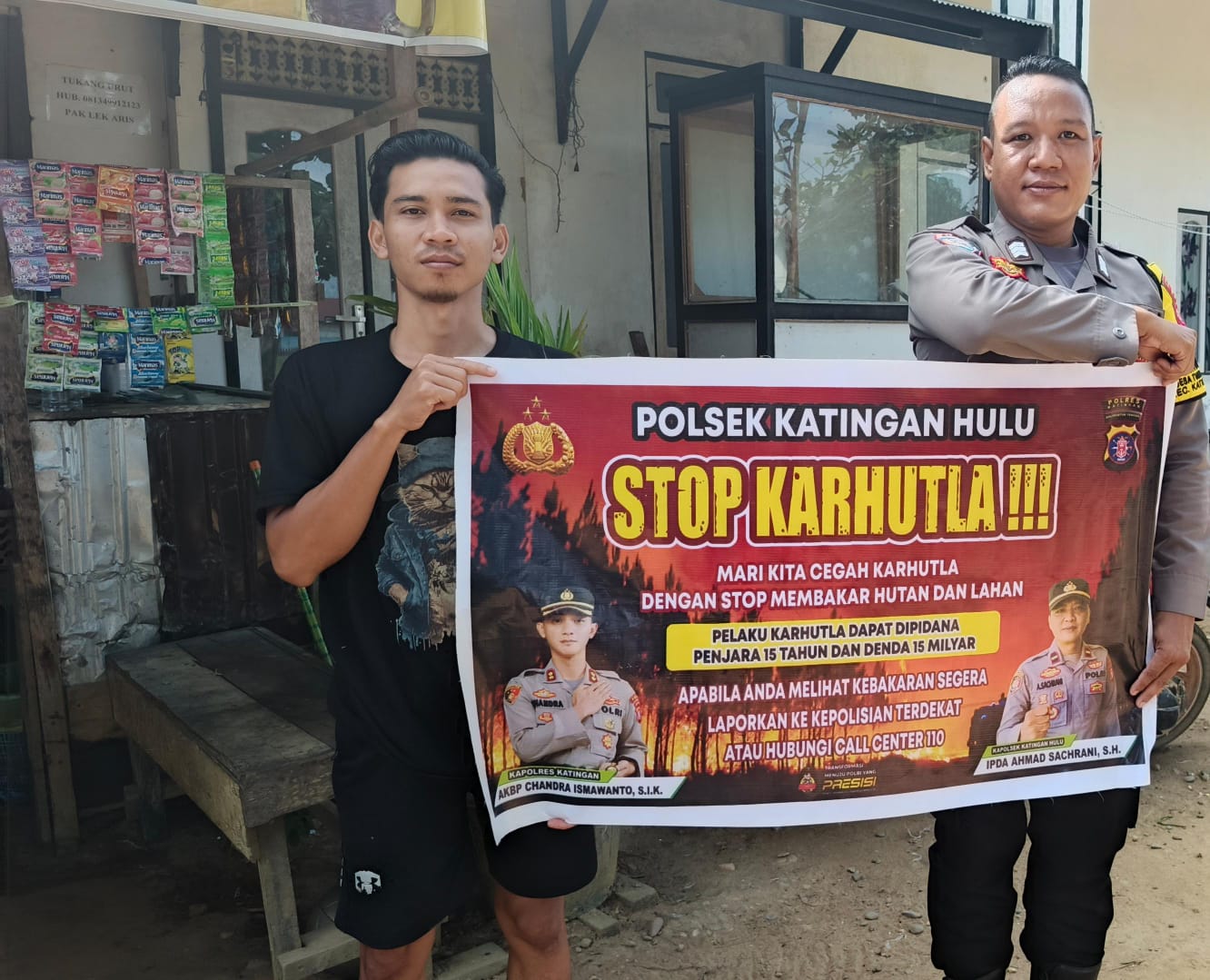 Kapolres Katingan AKBP CHANDRA ISMAWANTO S.I.K melalui Kapolsek IPDA AHMAD SACHRANI, S.H menyampaikan kegiatan ini dilakukan secara rutin dan terus-menerus dengan langsung turun ke semua wilayah baik pada tingkat Desa maupun pada tingkat Kecamatan agar masyarakat mengetahui tentang LARANGAN MEMBAKAR HUTAN DAN LAHAN.