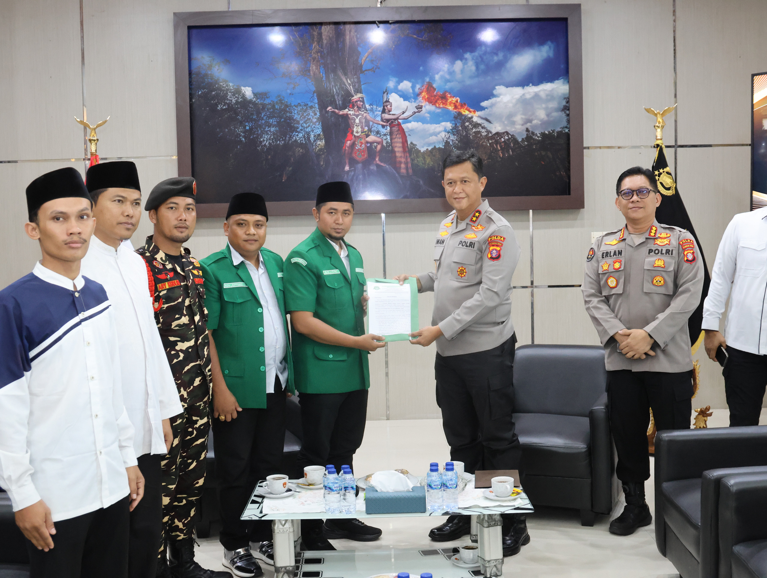 Kapolda Kalteng melalui Kabidhumas Kombes Pol Erlan Munaji menyampaikan apresiasinya atas kehadiran GP Ansor yang datang untuk menyampaikan aspirasi kepada pihak kepolisian.
