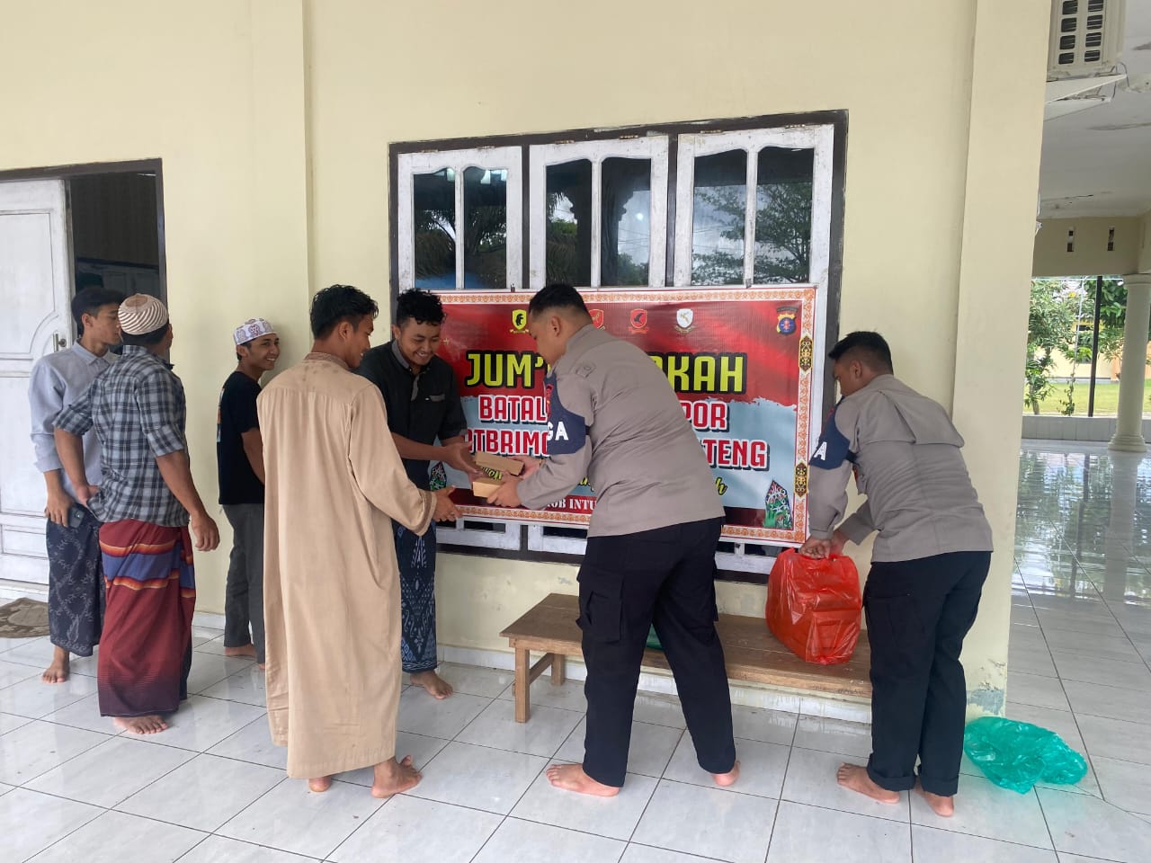 Kegiatan sosial yang rutin dilaksanakan setiap pekan ini menjadi wadah bagi jajaran Brimob Kalteng untuk berbagi kebahagiaan, mempererat silaturahmi, sekaligus menumbuhkan semangat kepedulian sosial di tengah masyarakat. Dalam kegiatan ini, personel Brimob membagikan paket makanan dan sembako kepada masyarakat sekitar masjid serta jamaah yang membutuhkan.