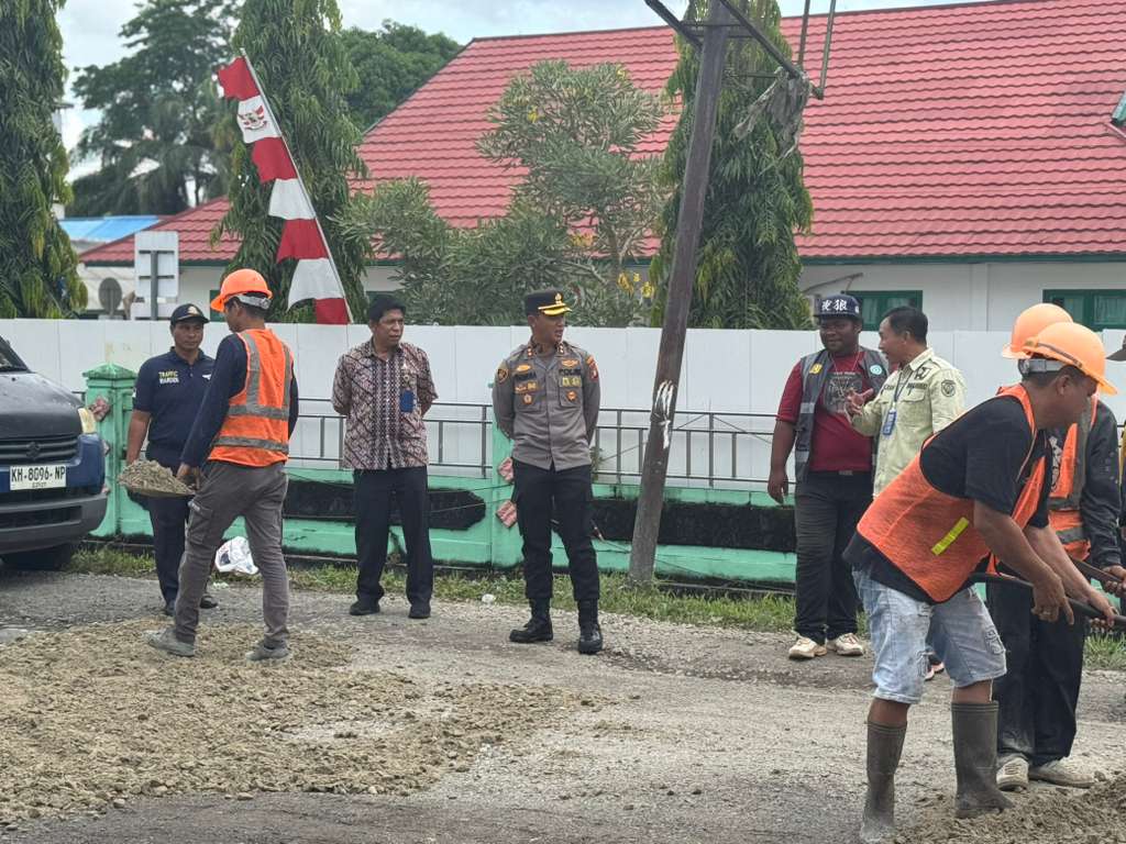 Kapolres Katingan AKBP Chandra Ismawanto, S.I.K, turut serta dalam kegiatan tersebut, menegaskan bahwa penanggulangan jalan rusak merupakan tanggung jawab bersama demi keselamatan publik.