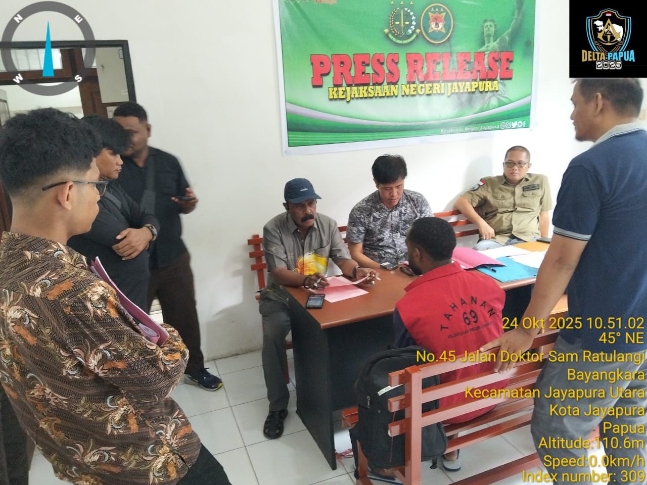 Jayapura – Personel Operasi Damai Cartenz-2025 melaksanakan kegiatan penyerahan tersangka dan barang bukti (Tahap II) terhadap satu orang tersangka atas nama Yopi Balingga di Kejaksaan Negeri Jayapura, Jumat (24/10/2025).