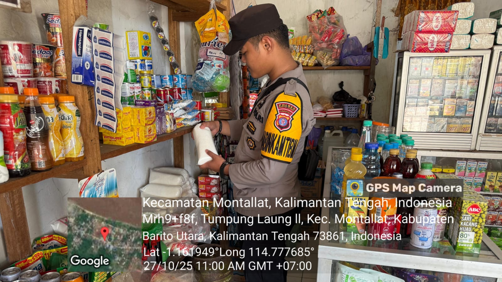 Tribratanews.kalteng.polri.go.id – Polres Barito Utara – Dalam rangka memastikan ketersediaan dan kestabilan harga bahan pokok (sembako), Polsek Montallat melaksanakan pengecekan langsung di sejumlah pasar dan toko sembako di wilayah hukum Polsek Montallat, Siang Senin 27 Oktober 2025. Pukul 11.00 Wib.