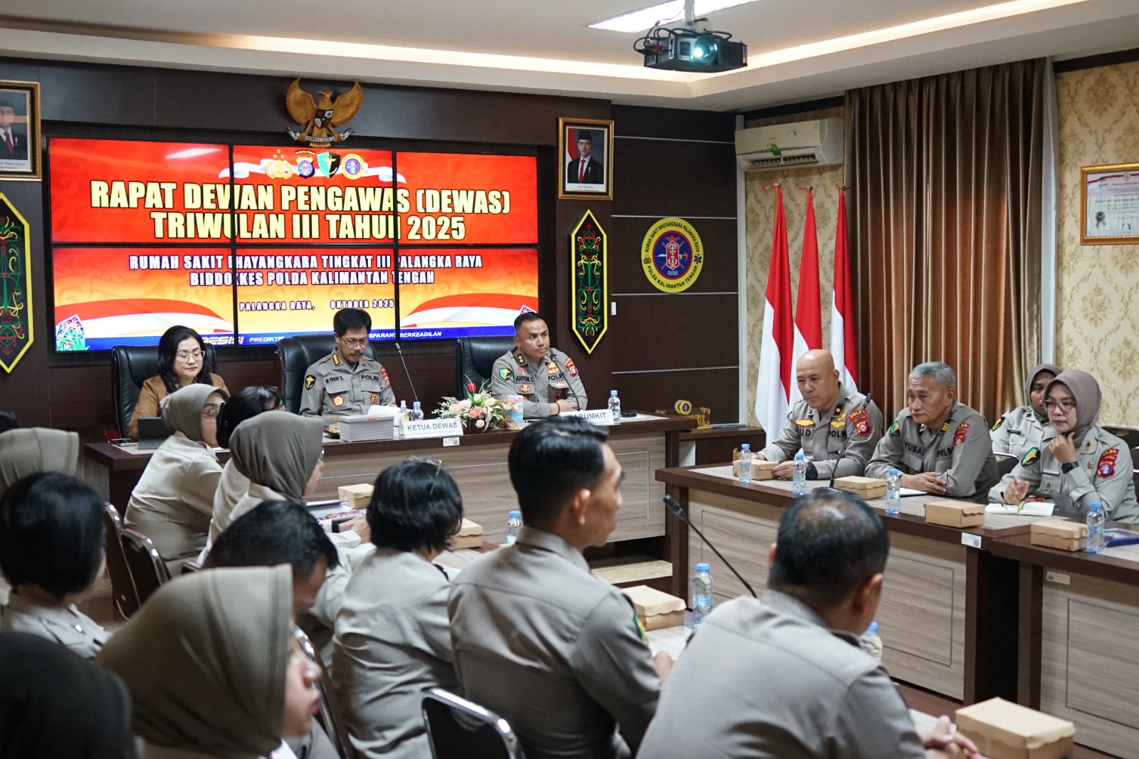 Palangka Raya – Perkuat tata kelola dan meningkatkan mutu pelayanan kesehatan, Rumah Sakit (Rumkit) Bhayangkara Palangka Raya Polda Kalteng menggelar Rapat Dewan Pengawas (Dewas) yang berlangsung di Aula Gawi Hapakat Rumkit Bhayangkara setempat, Selasa (28/10/2025).