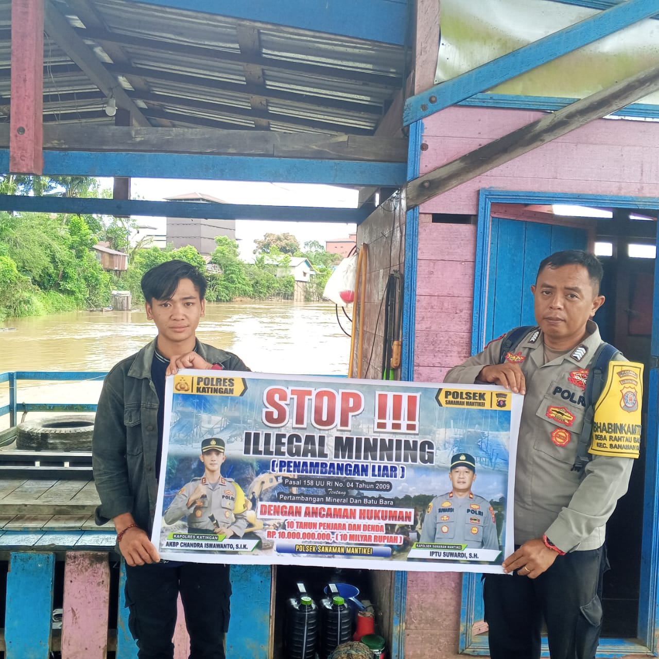 Kapolres Katingan AKBP CHANDRA ISMAWANTO, S.I.K., melalui Kapolsek Sanaman Mantikei Iptu SUWARDI, S.H., menjelaskan kegiatan Bhabinkamtibmas jajaran Polres Katingan dengan cara sosialisasi kepada masyarakat agar mengerti dan memahami tentang larangan Ilegal Mining serta mengerti bahwa dampak dan akibat yang di timbulkan akibat Ilegal mining tersebut.