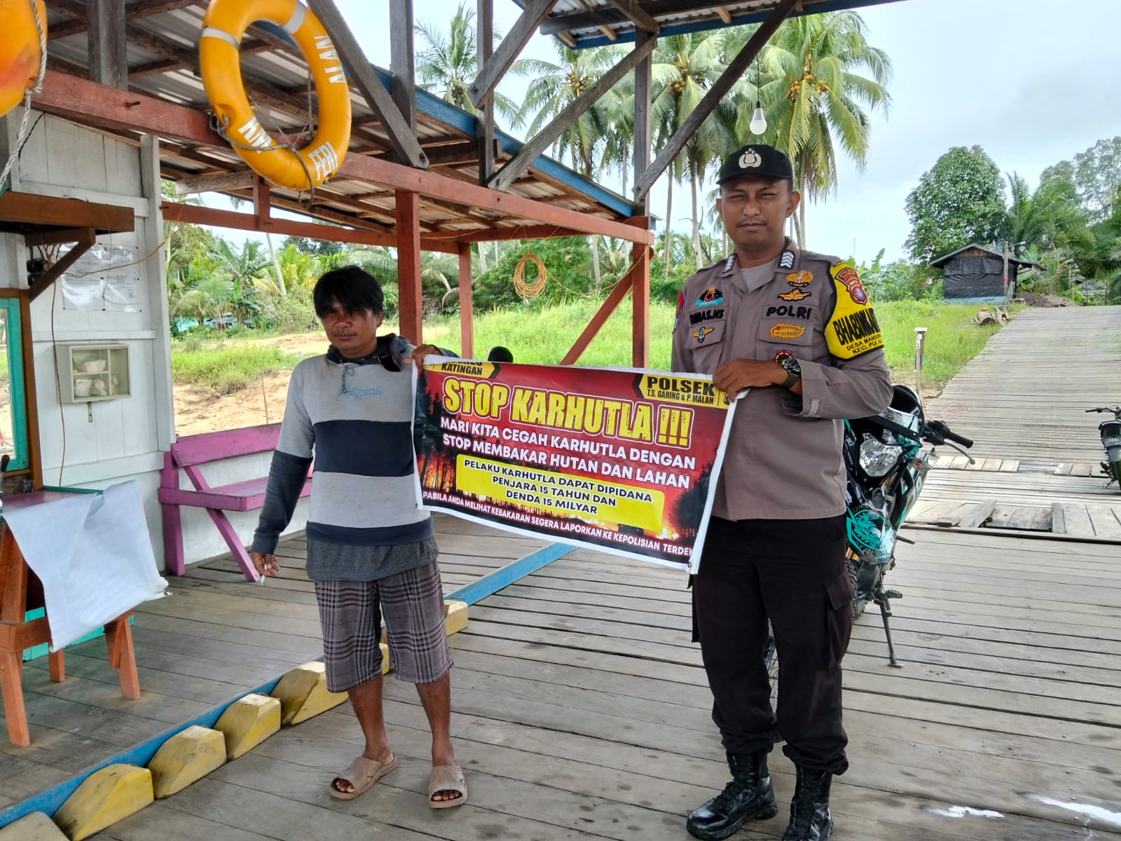 Polres Katingan – Salah satu cara Polsek Katingan Hulu, Polres Katingan, Polda Kalimantan Tengah dalam menangani Dampak KARHUTLA, Bhabinkamtibmas Aulia Rahman polsek Katingan Hulu melaksanakan Sosialisasi STOP!!! KEJAHATAN TERHADAP LINGKUNGAN “DILARANG MEMBAKAR HUTAN DAN LAHAN DI WILKUM POLSEK KATINGAN HULU kepada masyarakat Desa Tumbang Hangei II Kec Katingan Hulu, Kab. Katingan kegiatan,Senin (03/11/2025) pagi.