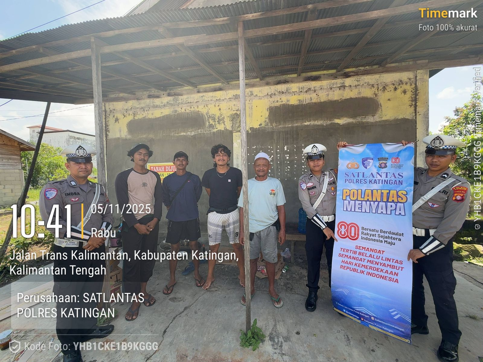 Personil Satlantas Polres Katingan sebagai anggota preemtif bergerak turun ke Jalan untuk meninformasikan kepada pengendara melalui Polantas Menyapa, untuk menciptakan keamanan dan keselamatan berlalu lintas.