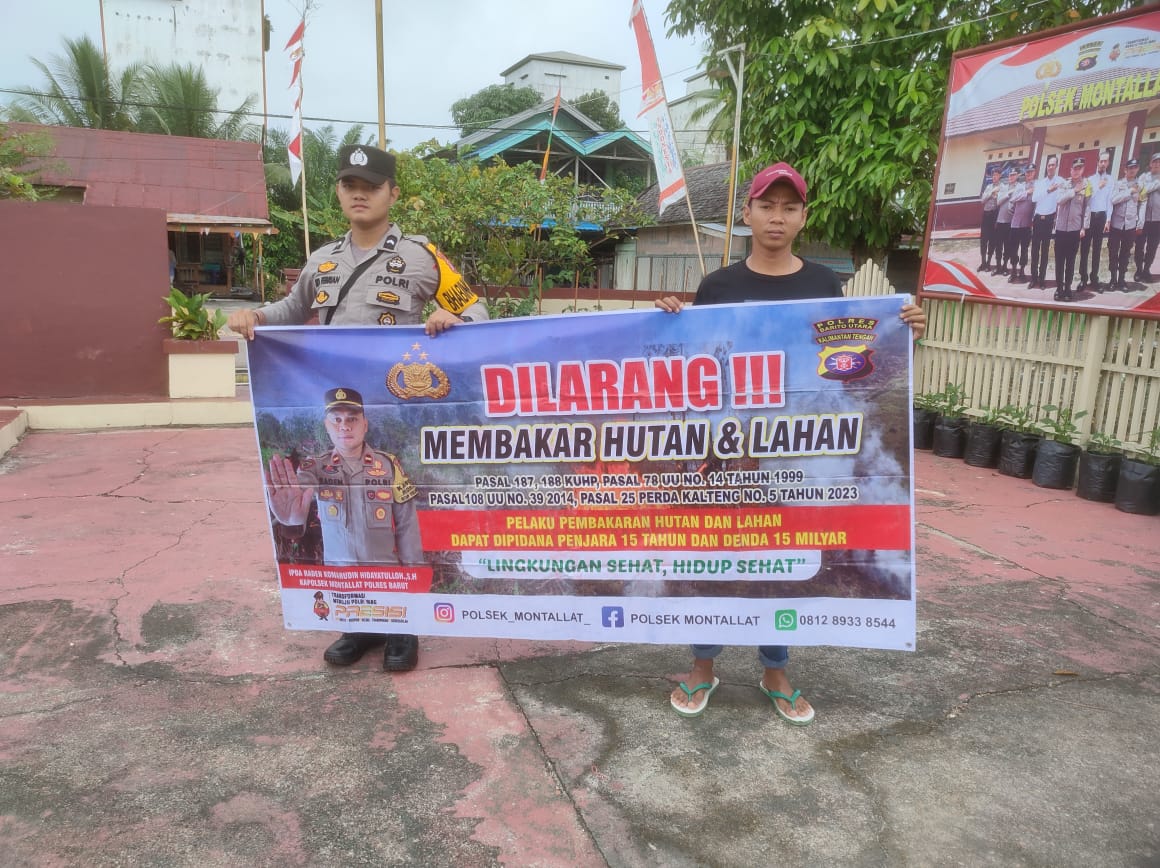 **Tribratanews.kalteng.polri.go.id – Polres Barito Utara –** Polsek Montallat melaksanakan sosialisasi tentang kebakaran hutan dan lahan (Karhutla) guna meningkatkan kesadaran masyarakat akan bahaya dan dampak negatif dari kebakaran yang terjadi di wilayahnya. Kapolres Barito Utara, AKBP Singgih Febiyanto, S.H., S.I.K., melalui Kapolsek Montallat, IPDA RADEN KOMARUDIN HIDAYATULLOH S.H., menegaskan pentingnya kolaborasi antara aparat keamanan, masyarakat, dan pemerintah dalam upaya pencegahan Karhutla.