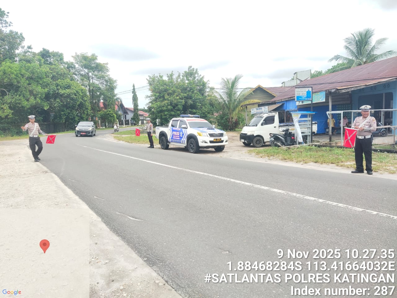 Nampak dalam kegiatan tersebut Personil Piket Satlantas Polres Katingan memberikan intruksi kepada pengguna jalan saat melewati jalan tersebut agar berhati hati dan memelankan laju kendaraannya dikarenakan daerah tersebut terdapat pemukiman warga dan tikungan tajam setelahnya.