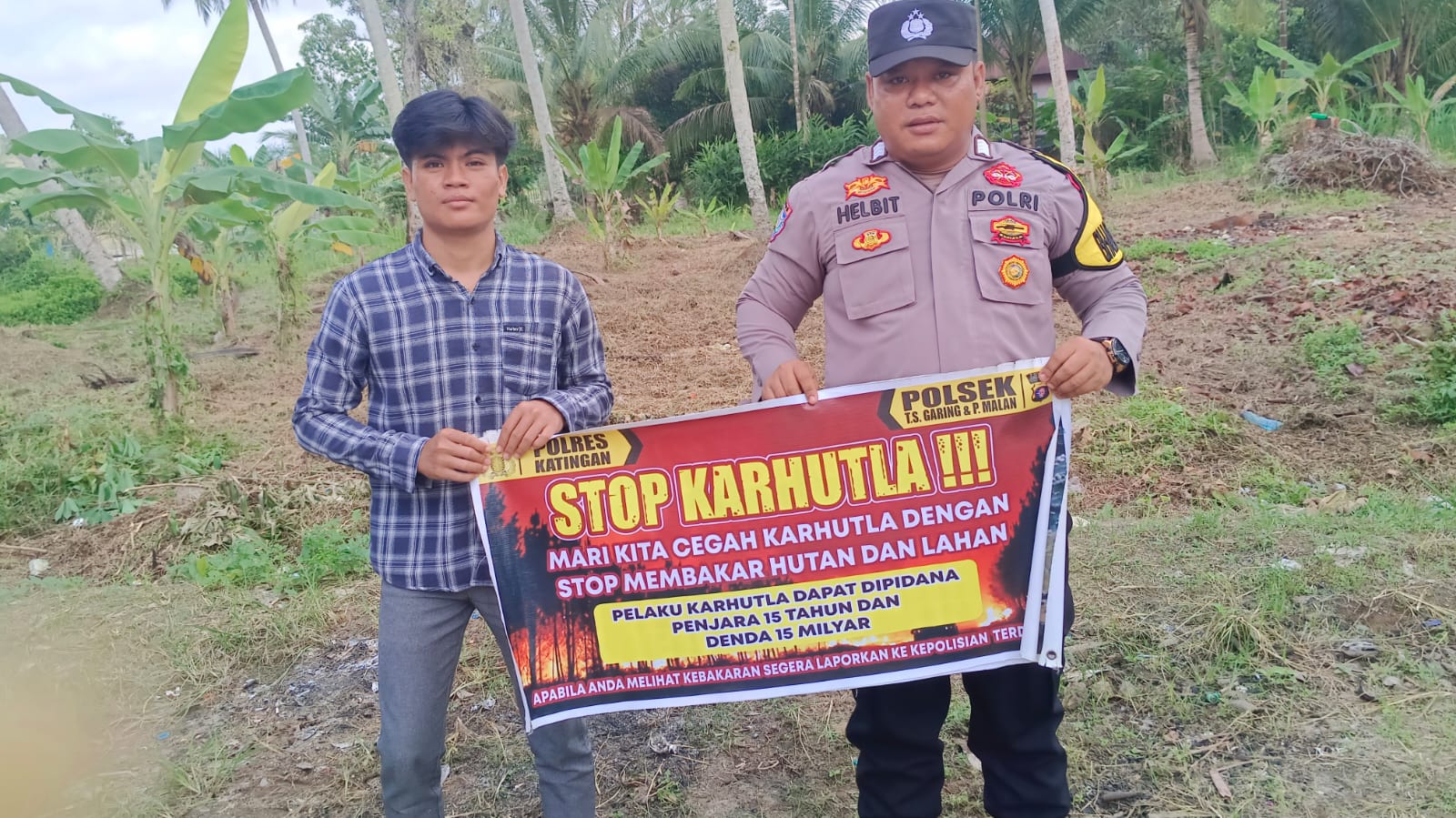 Polres Katingan – Salah satu cara Polsek Tws. Garing dan Pulau Malan, Polres Katingan, Polda Kalimantan Tengah dalam menangani Dampak KARHUTLA, Bhabinkamtibmas Ds. Buntut Bali Polsek Tws. Garing dan Pulau Malan melaksanakan Sosialisasi STOP!!! KEJAHATAN TERHADAP LINGKUNGAN “DILARANG MEMBAKAR HUTAN DAN LAHAN DI WILKUM POLSEK TWS GARING DAN P. MALAN kepada masyarakat Desa Buntut Bali, Kec. Pulau Malan Kab.Katingan kegiatan, Selasa (11/11/2025) pagi.
