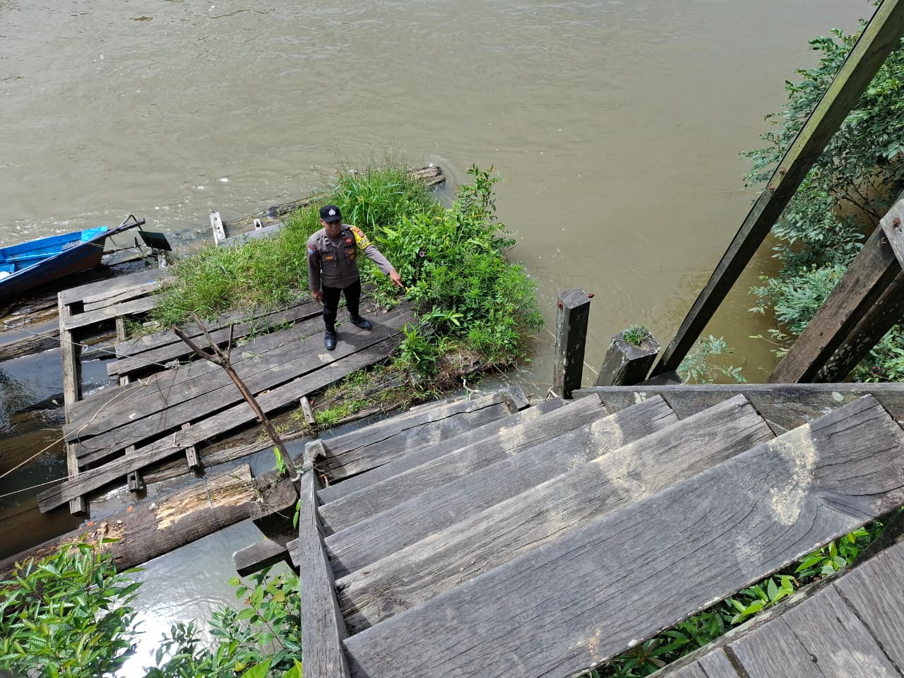 Polres Lamandau – Personel Polsek Lamandau Melaksanakan Patroli dan Pantau Cek debit air Sungai Lamandau Antisipasi terjadinya Bencana banjir di Wilayah Kabupaten Lamandau Khususnya Kecamatan Lamandau yang bertempat di Dermaga Tapin Bini, kecamatan Lamandau, Kabupaten Lamandau, Provinsi Kalteng, Rabu (12/11/25) Pagi.