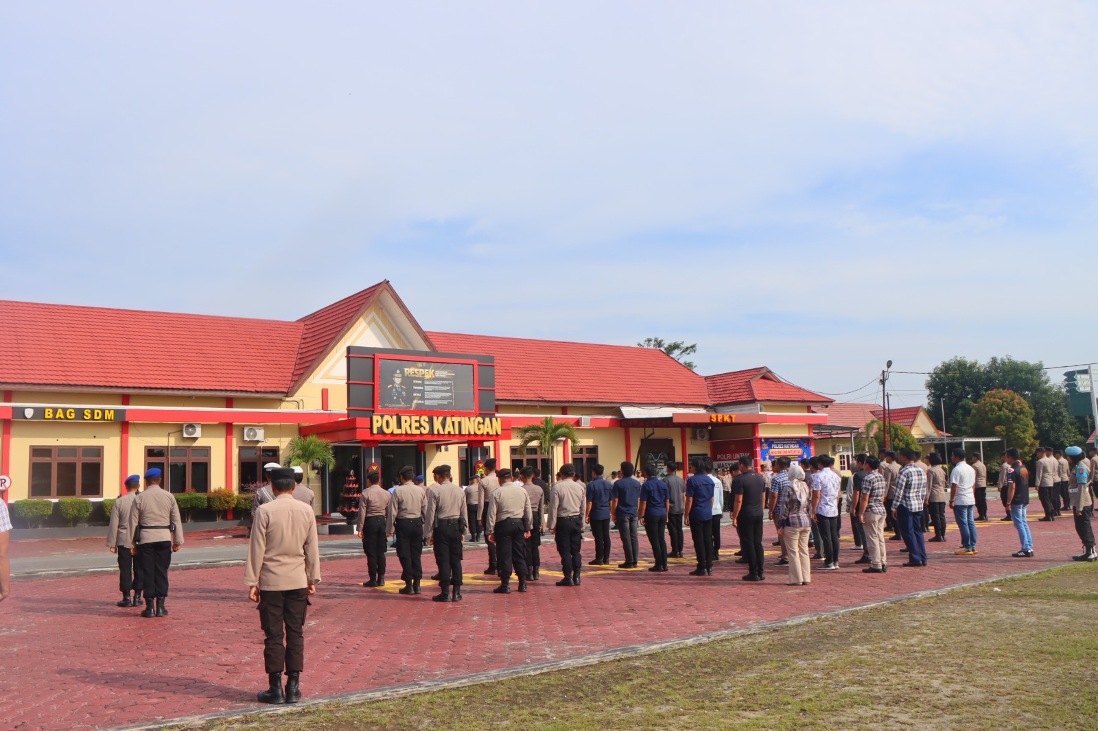 Apel diikuti oleh para Pejabat Utama (PJU) Polres Katingan, seluruh personel, serta Aparatur Sipil Negara (ASN) Polres Katingan.