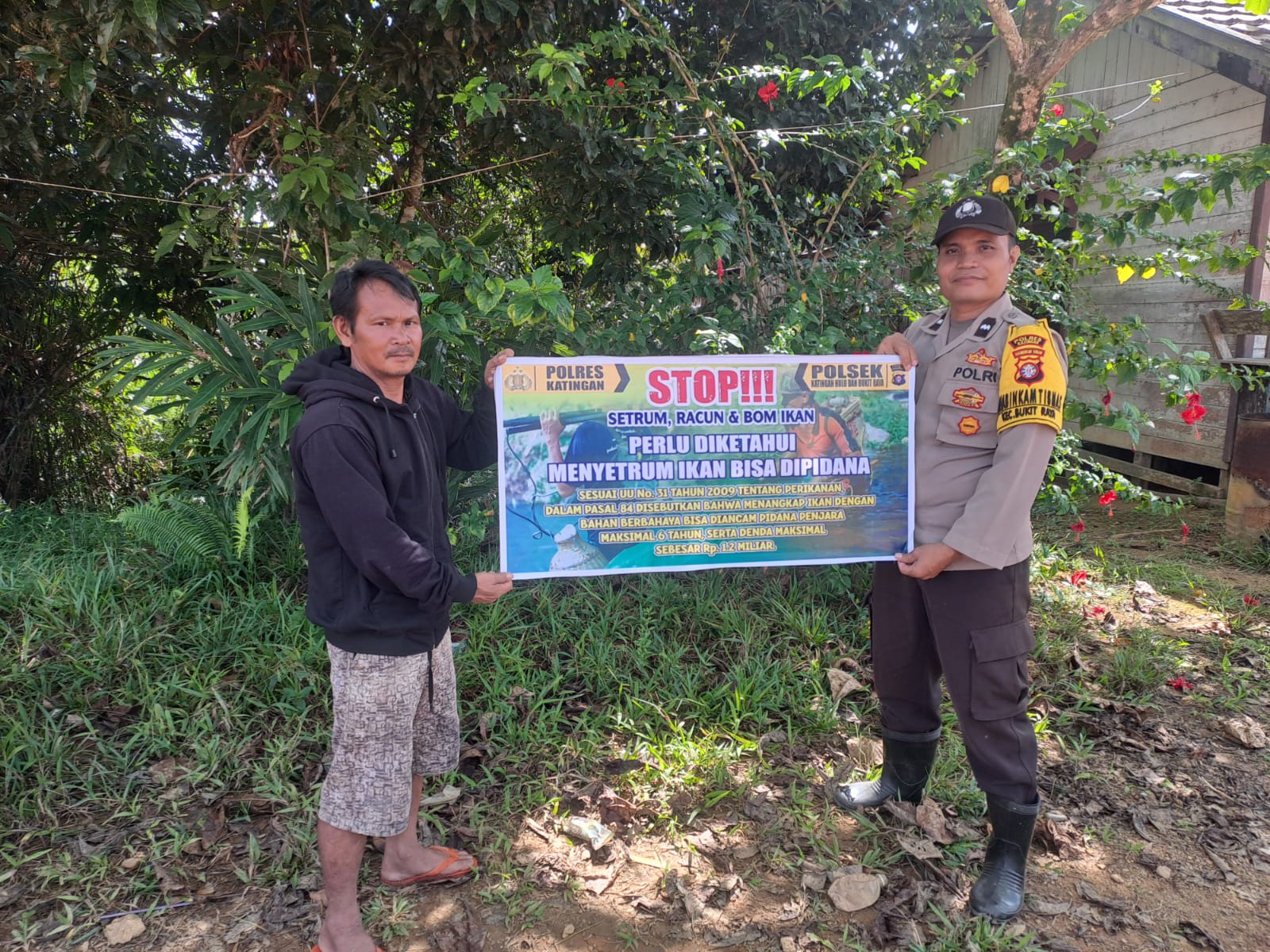 Kapolres Katingan AKBP Chandra Ismawanto, S.I.K., melalui Kapolsek Katingan Hulu dan Bukit Raya IPTU YUBAMBANG KUSNADY, S.H., membenarkan bahwa pihaknya rutin melaksanakan kegiatan sosialisasi kepada masyarakat.Kegiatan ini kami lakukan sebagai bentuk pencegahan serta mengajak masyarakat bersama-sama untuk memberantas kegiatan menangkap ikan dengan menggunakan SETRUM, RACUN dan BOM IKAN karena bisa dipidana sesuai UU 31 Tahun 2009 tentang Perikanan dalam pasal 84 disebutkan bahwa menangkap ikan dengan bahan berbahaya bisa diancam pidana penjara maksimal 6 Tahun serta denda maksimal sebesar Rp 1,2 Miliar.