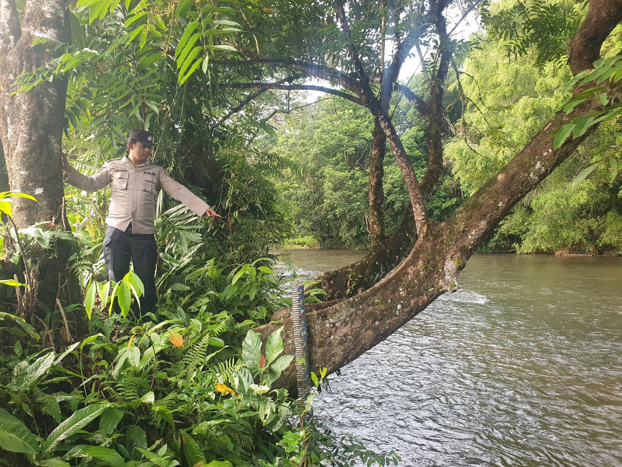Polres Lamandau – Polsek Delang, Piket Polsek Delang melakukan kegiatan rutin pengecekan debit air DAS Delang di TMA Kelurahan Kudangan RT.02 Kecamatan Delang, Rabu (19/11/25) Pagi