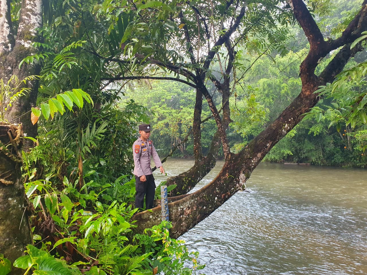 Polres Lamandau – Polsek Delang, Piket Polsek Delang melakukan kegiatan rutin pengecekan debit air DAS Delang di TMA Kelurahan Kudangan RT.02 Kecamatan Delang, Selasa (25/11/25) Pagi