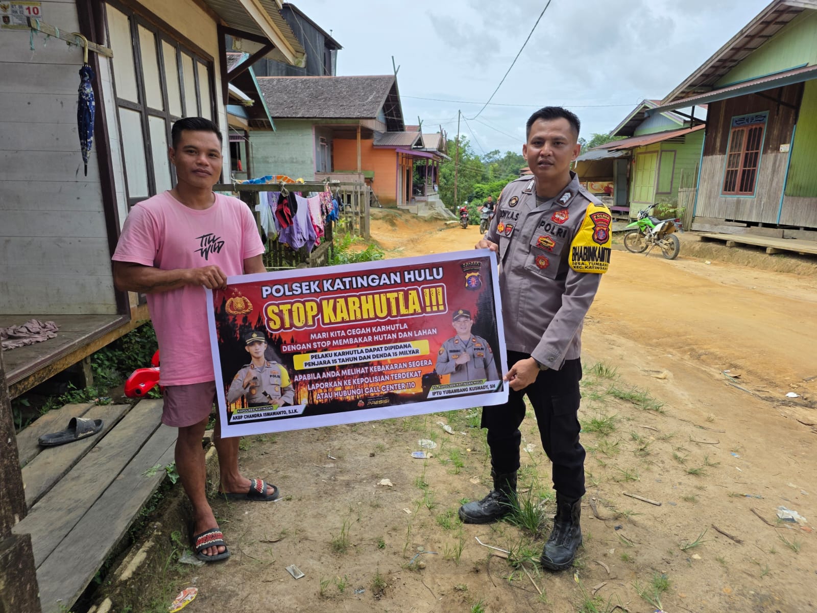 Polres Katingan – Polsek Katingan Hulu, Polres Katingan, Polda Kalimantan Tengah dalam menangani Dampak KARHUTLA, Bhabinkamtias Brigpol Dony Apriady Saputra polsek Katingan Hulu melaksanakan Sosialisasi STOP!!! KEJAHATAN TERHADAP LINGKUNGAN “DILARANG MEMBAKAR HUTAN DAN LAHAN DI WILKUM POLSEK KATINGAN HULU kepada masyarakat Desa Tumbang Jiga Kec Katingan Hulu, Kab. Katingan kegiatan, Rabu (3/12/2025) pagi.