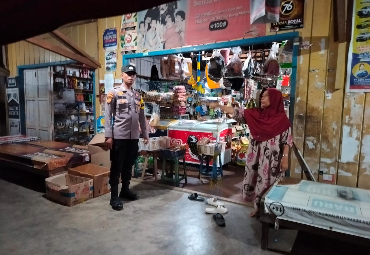 Polres lamandau – Untuk mencegah gangguan kamtibmas dan tindak kriminal di lokasi pasar tradisional, anggota Piket Polsek Delang melaksanakan patroli pertokoan di pasar tradisional setempat, sekaligus dialogis dan imbauan kamtibmas dengan pedagang dan pengunjung pasar, Rabu (3/12/25) Malam.