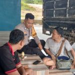 Lamandau – Bhabikamtibmas Brigpol Imron Rasyidi Polsek Sematu Jaya mendampingi proses penyerahan bantuan pangan berupa beras dan minyak goreng dari Bulog kepada Warga Kantor desa Mukti Manunggal, kec. Menthobi Raya kab. Lamandau pada penyaluran bantuan tahun 2025, Jumat (5/12/25) Pagi.