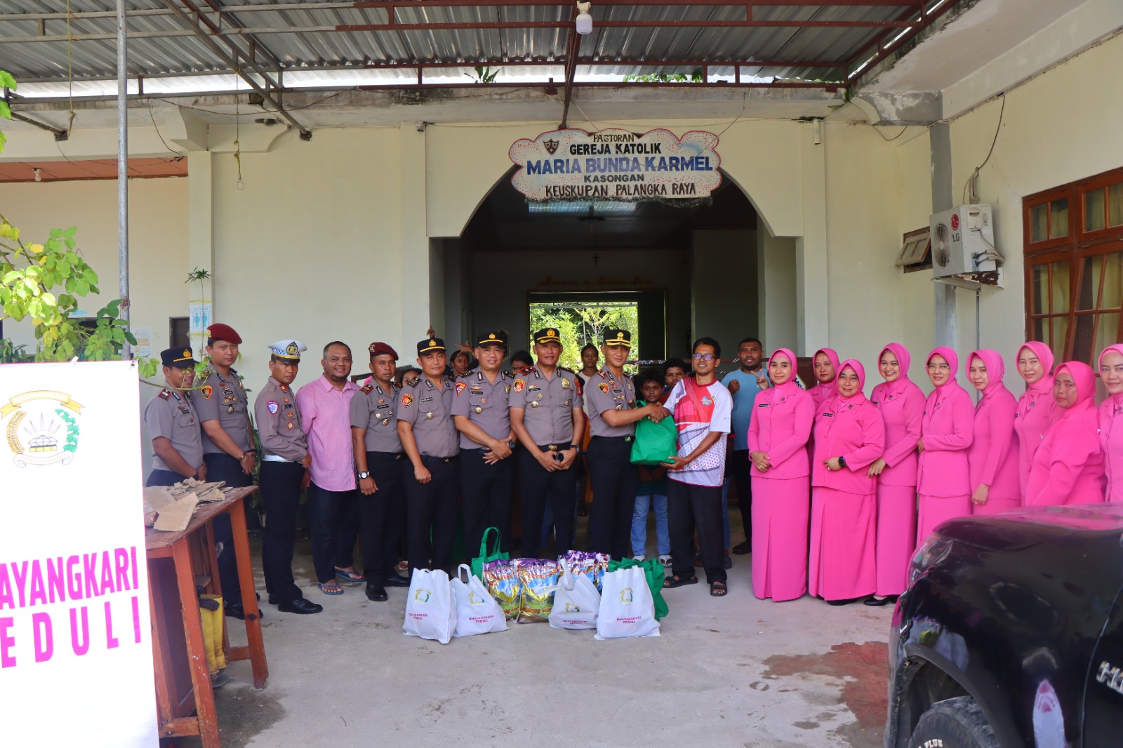 Katingan – Kapolres Katingan AKBP Chandra Ismawanto, S.I.K., bersama Ketua Bhayangkari Cabang Katingan Ny. Fitria Chandra Ismawanto menyerahkan bantuan sosial kepada Gereja Katolik Maria Bunda Karmel, Kasongan. Kegiatan ini merupakan wujud kepedulian Polri terhadap masyarakat dan tempat ibadah. Sabtu (13/12/2025) Siang