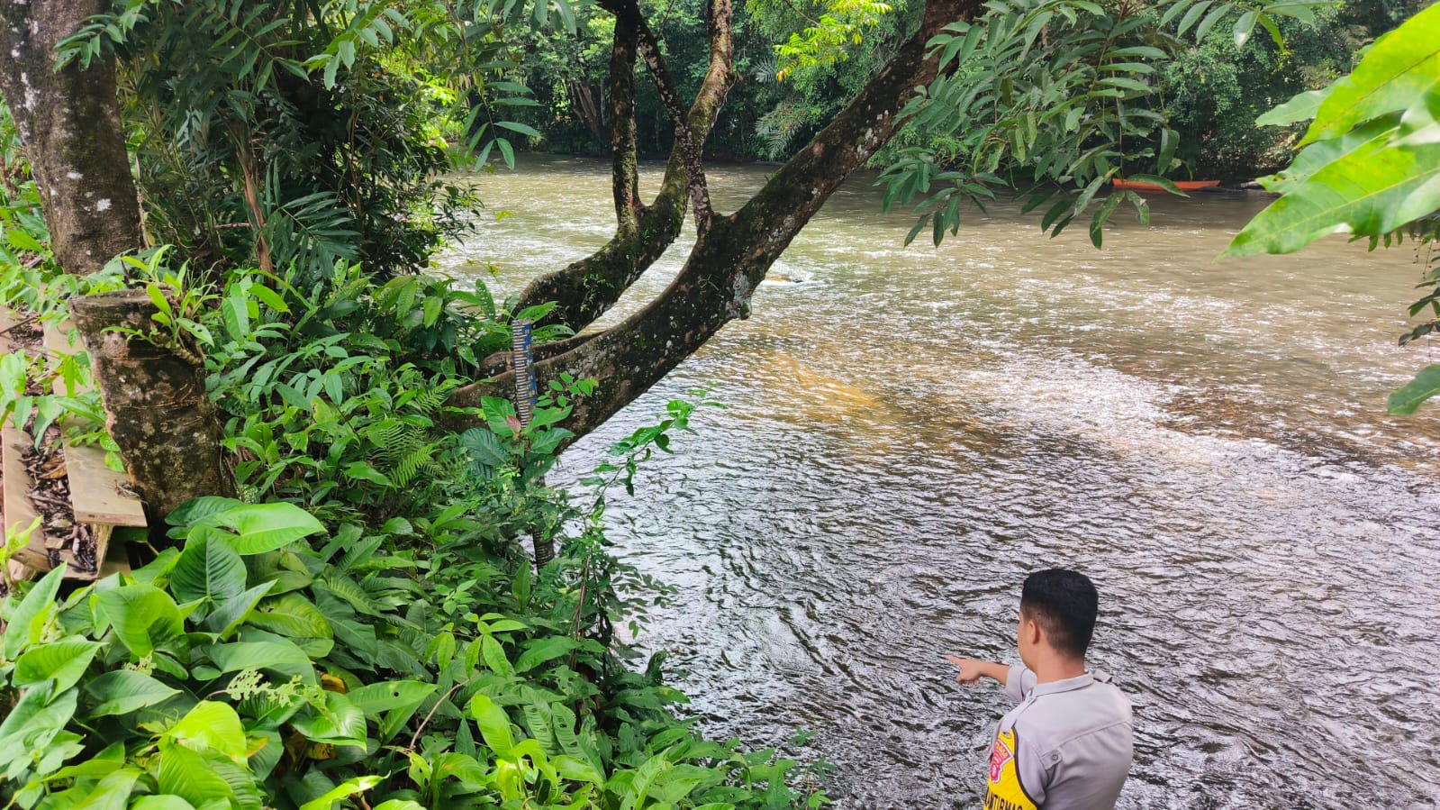 Polres Lamandau – Polsek Delang, Piket Polsek Delang melakukan kegiatan rutin pengecekan debit air DAS Delang di TMA Kelurahan Kudangan RT.02 Kecamatan Delang, Sabtu (13/12/25) Pagi