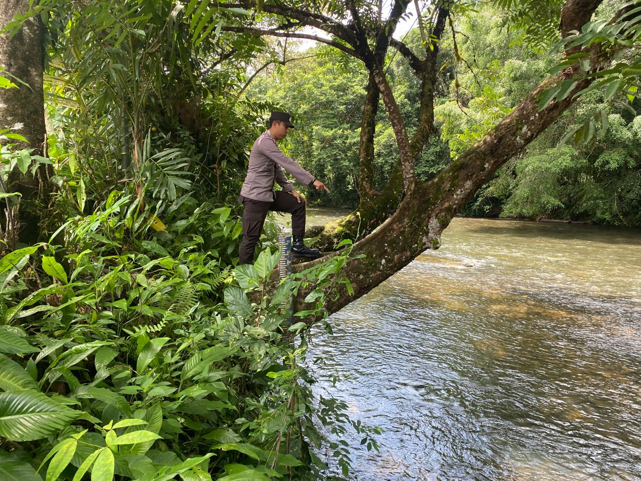 Lamandau – Polsek Delang, Piket Polsek Delang melakukan kegiatan rutin pengecekan debit air DAS Delang di TMA Kelurahan Kudangan RT.02 Kecamatan Delang, Senin (15/12/25) Pagi