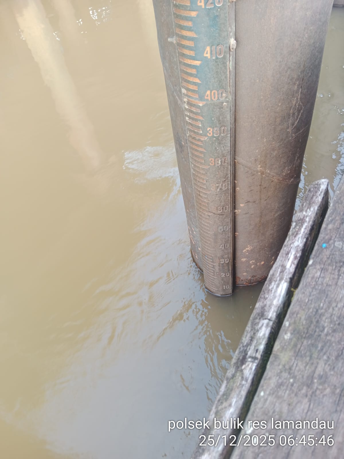 Lamandau – Personil Polsek Bulik melakukan kegiatan rutin pengecekan debit air DAS lamandau di TMA Kelurahan Nanga Bulik, Kamis (25/12/25) pagi