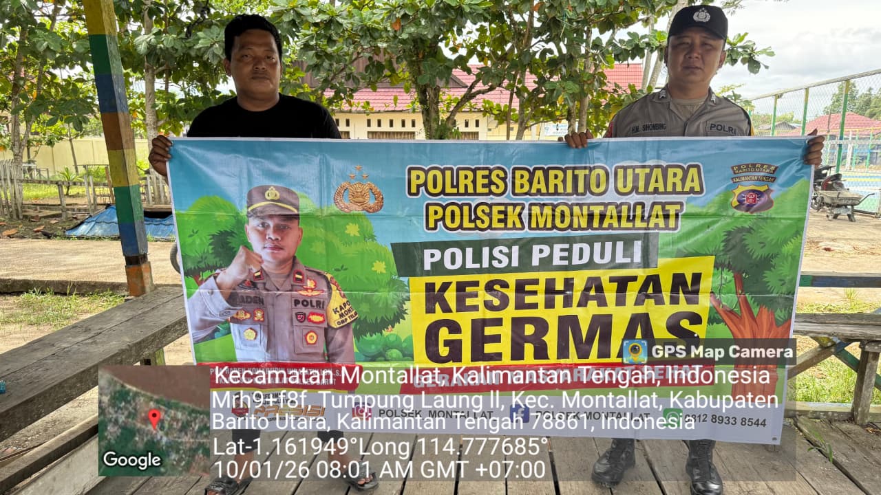 Tribratanews.kalteng.polri.go.id – Polres Barito Utara – Personel Polsek Montallat jajaran Polres Barito Utara, Polda Kalteng melaksanakan Sosialisasi Germas di Kel. Tumpung laung ll Kec. Montallat, Kab. Barito Utara.*Sabtu (10/01/2026) Pagi mulai Pukul 08:00 WIB.*