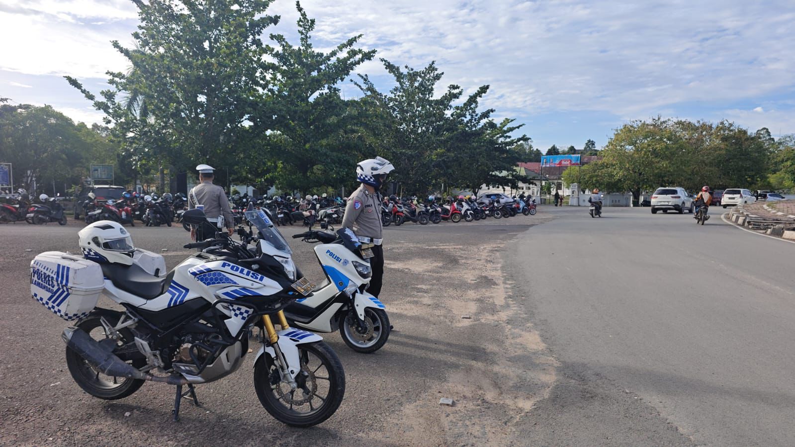 Dalam pelaksanaan kegiatan ini personil Sat Lantas yang di mulai pukul 06.30 Wita setiap harinya ini melaksanakan pengaturan di Jalan – Jalan yang di padati dengan pengguna jalan.
